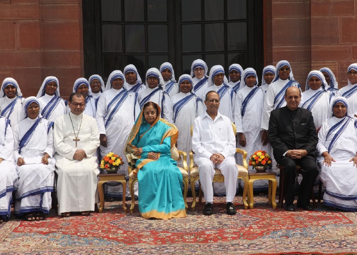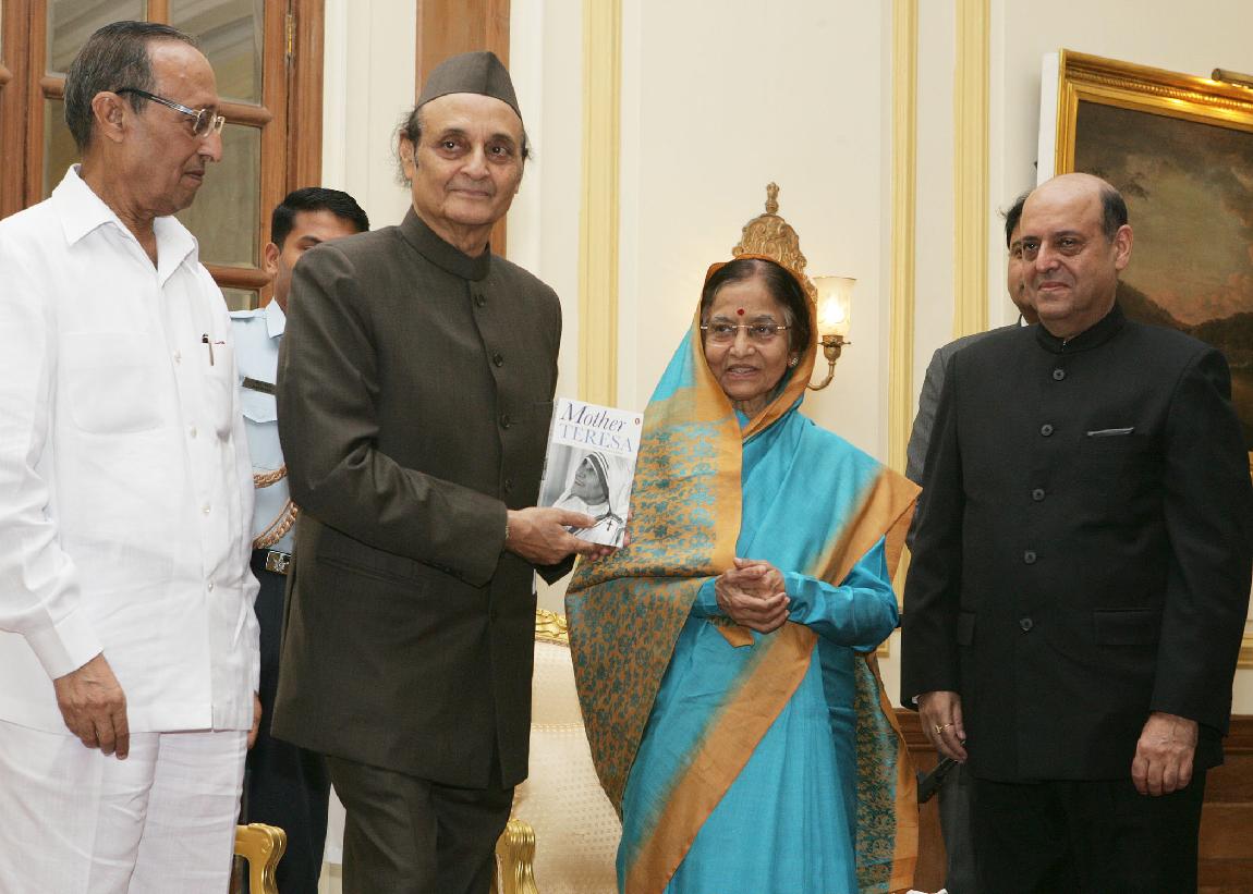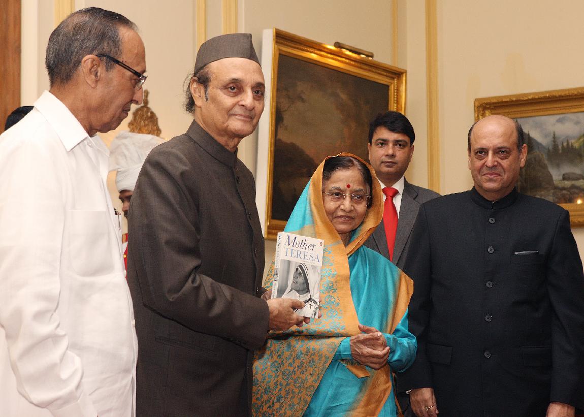 | Caption: | The President of India, Smt Pratibha Devisingh Patil receiving a copy of the book 'Mother Teresa Centenary Edition' by the former Chief Election Commissioner of India, Shri Navin B Chawla at Rashtrapati Bhavan in New Delhi on Aug 26, 2010 |