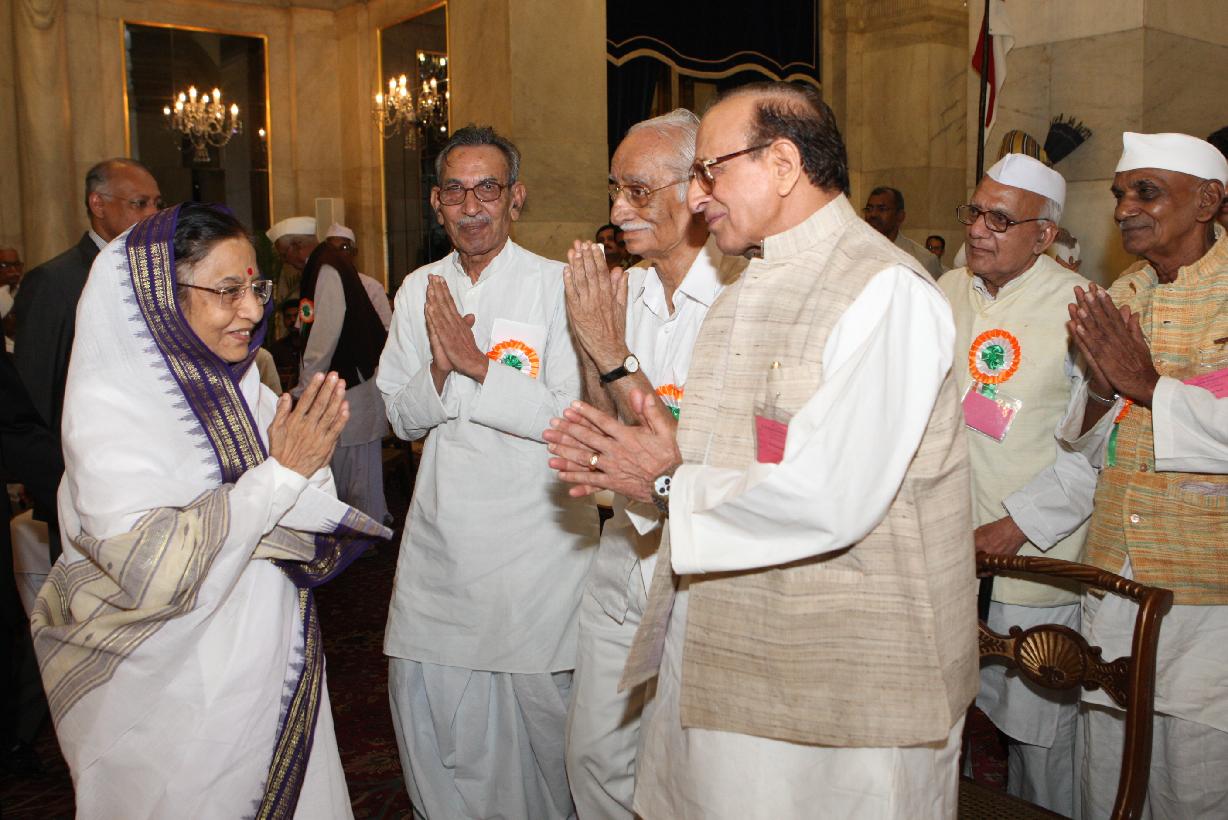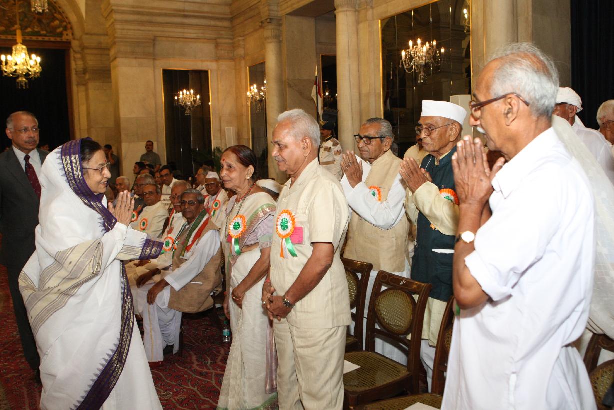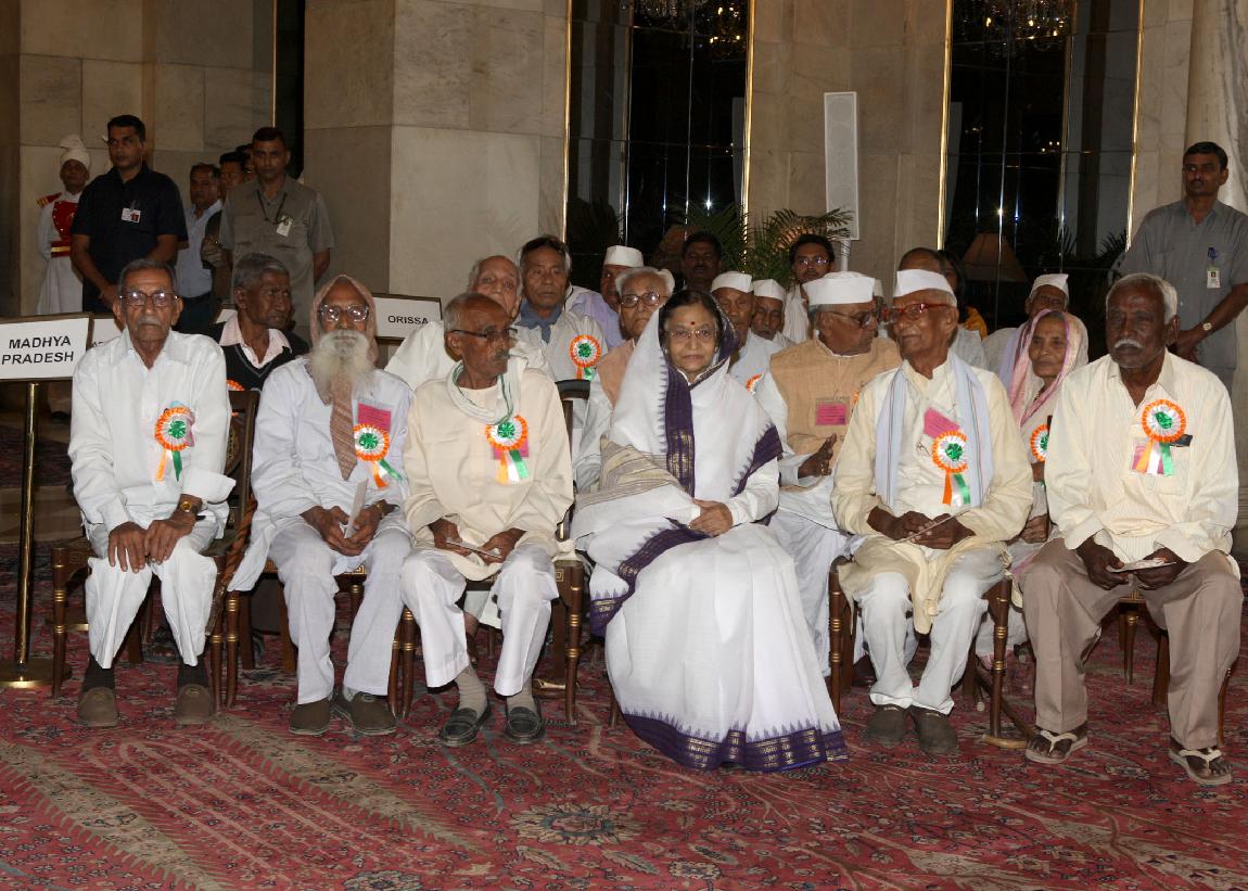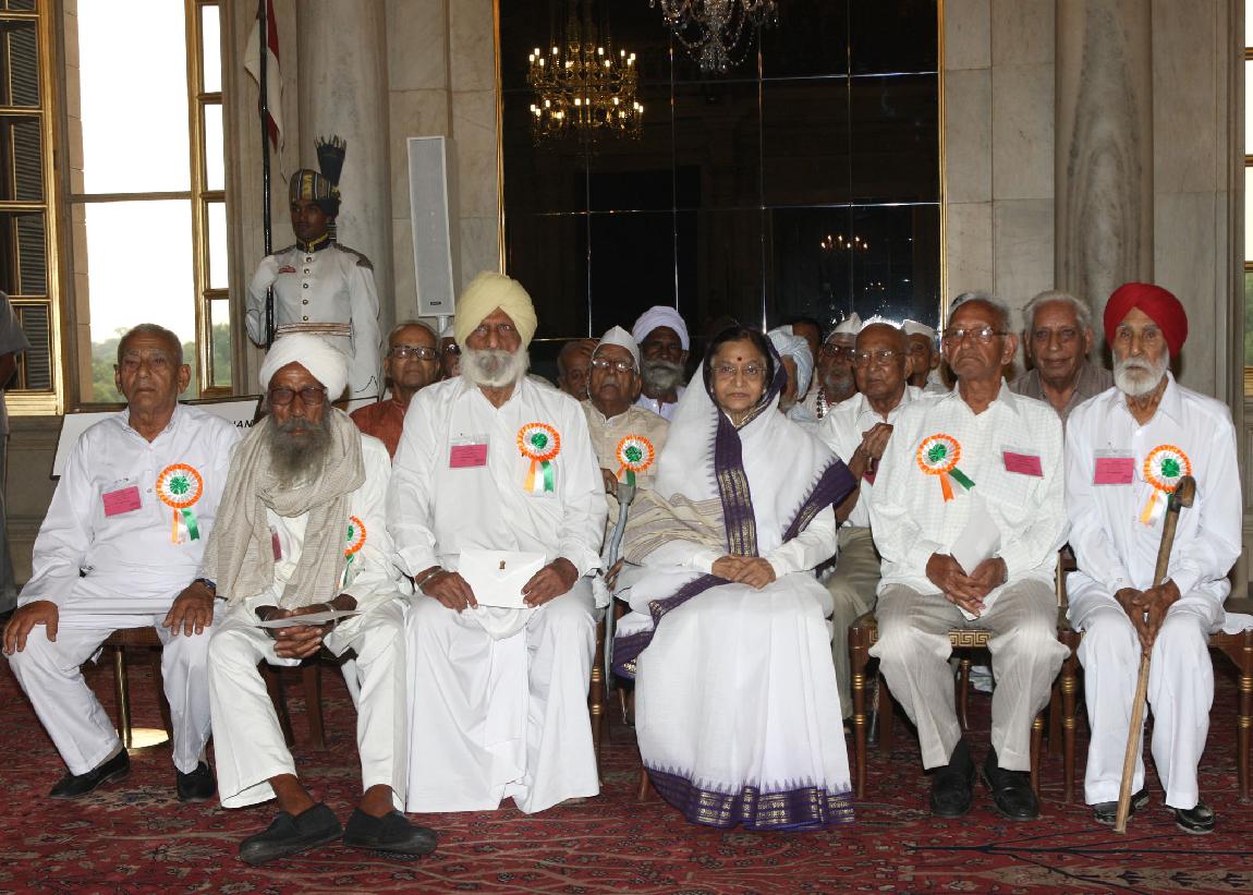 | Caption: | The President of India, Smt Pratibha Devisingh Patil with a Group of Freedom Fighters for whom She Hosted a Reception at Rashtrapati Bhavan in New Delhi on Aug 09, 2010 |