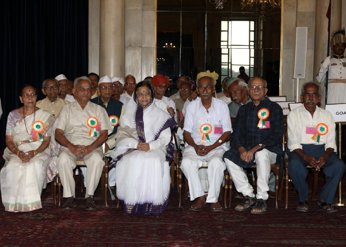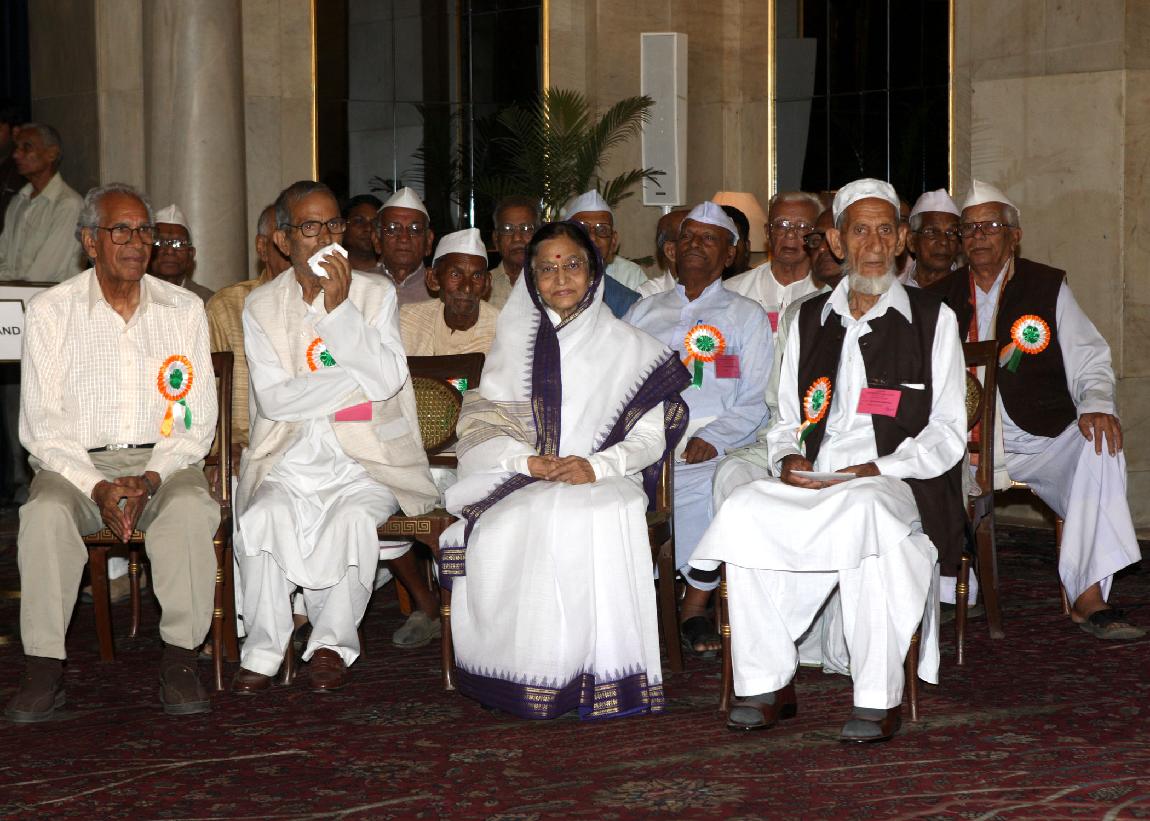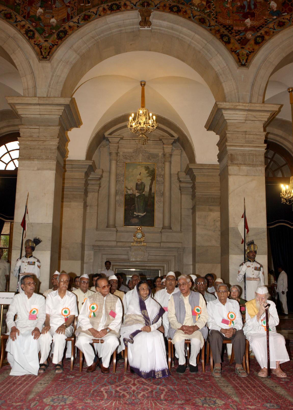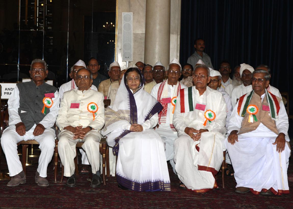 | Caption: | The President of India, Smt Pratibha Devisingh Patil with a Group of Freedom Fighters for whom She Hosted a Reception at Rashtrapati Bhavan in New Delhi on Aug 09, 2010 |