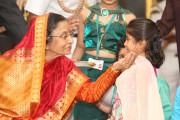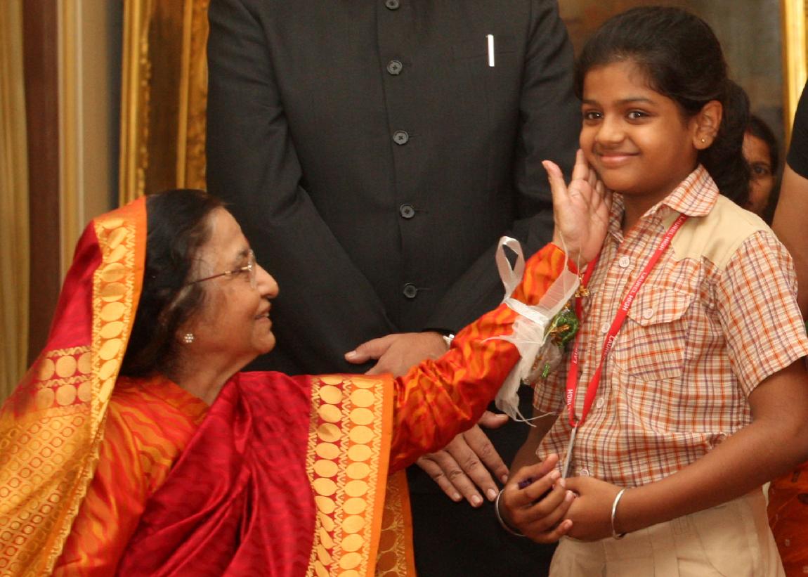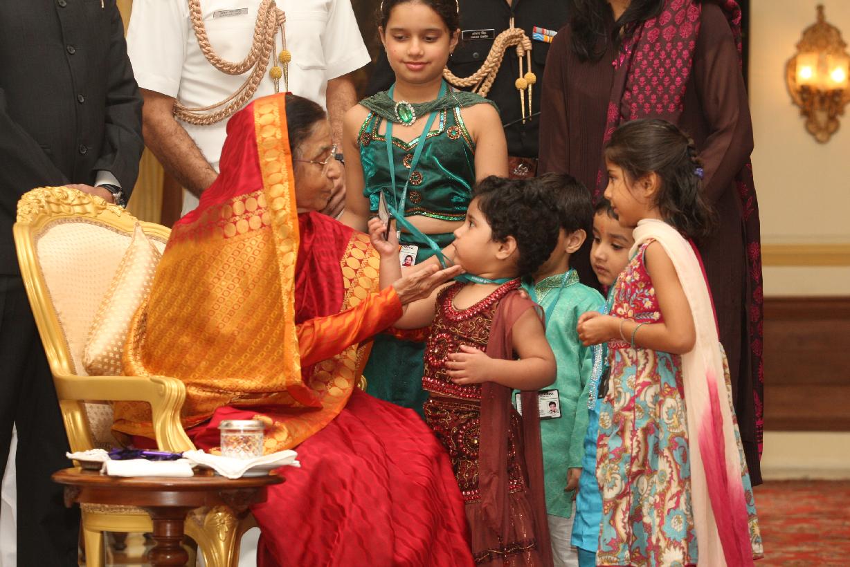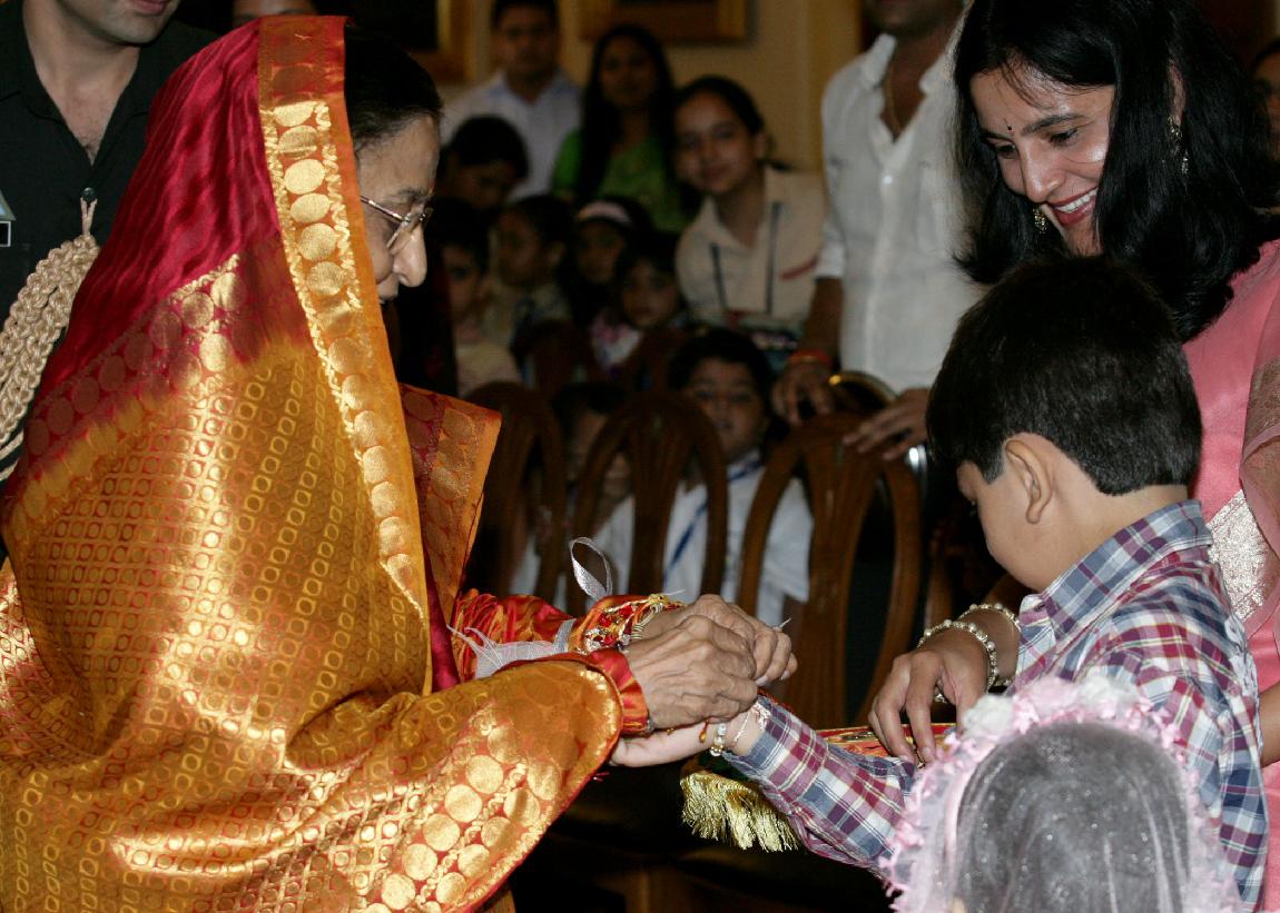 | Caption: | The President of India, Smt Pratibha Devisingh Patil interacting with the Children on the occasion of Raksha Bandhan at Rashtrapati Bhavan in New Delhi on Aug 24, 2010 |