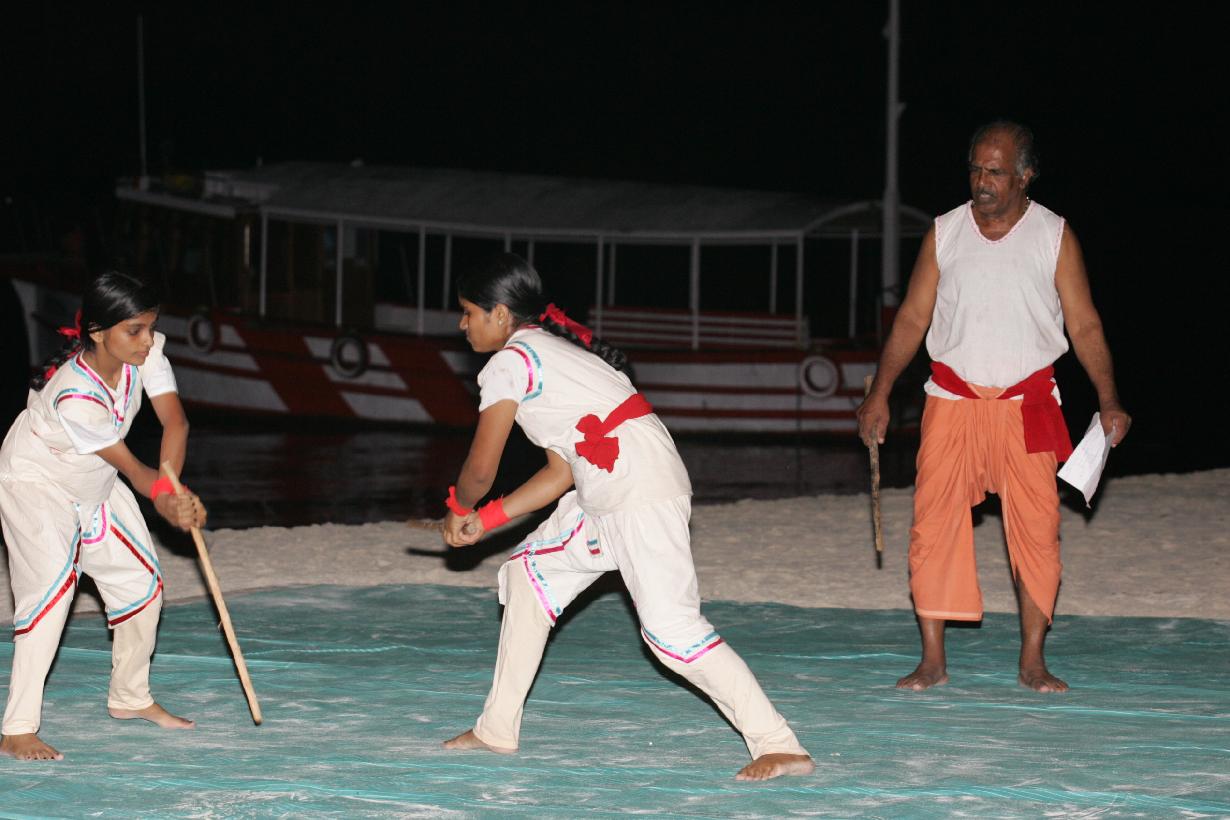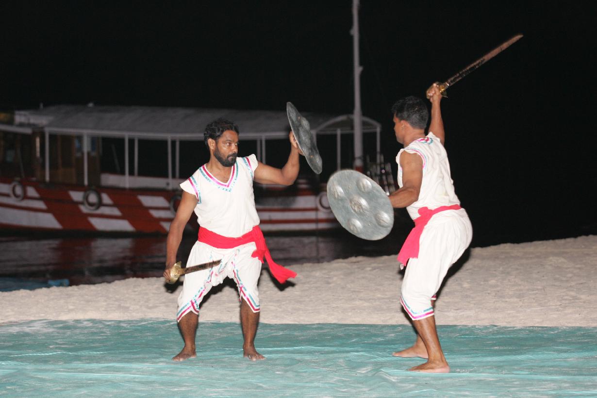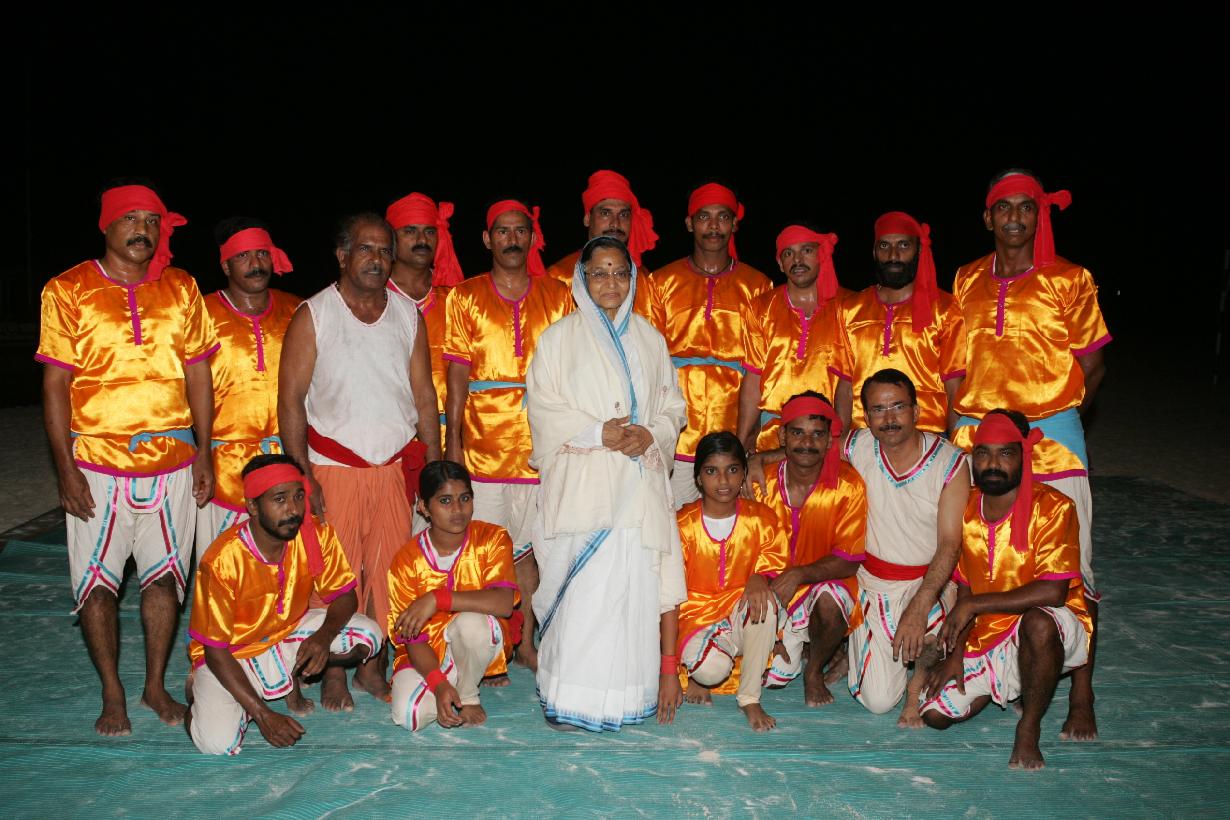 | Caption: | The President of India, Smt Pratibha Devisingh Patil watching Martial Art of Kerala at Bangaram Island in Lakshadweep on Dec 25, 2009 |