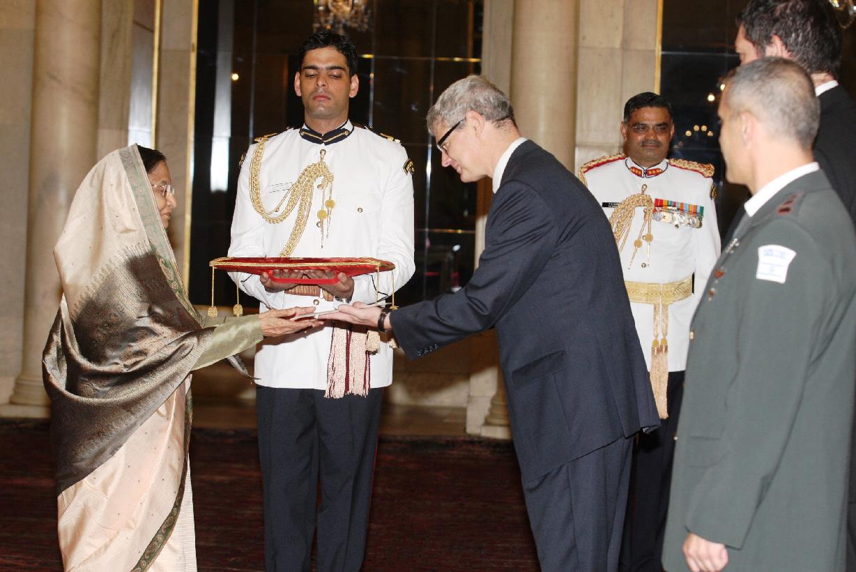 | Caption: | The Ambassador Designate of Israel, HE Mr Alon Ushpiz presenting his credentials to the President of India, Smt Pratibha Devisingh Patil at Rashtrapati Bhavan in New Delhi on Aug 12, 2011 |