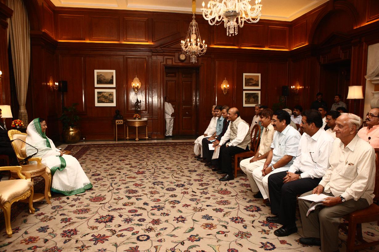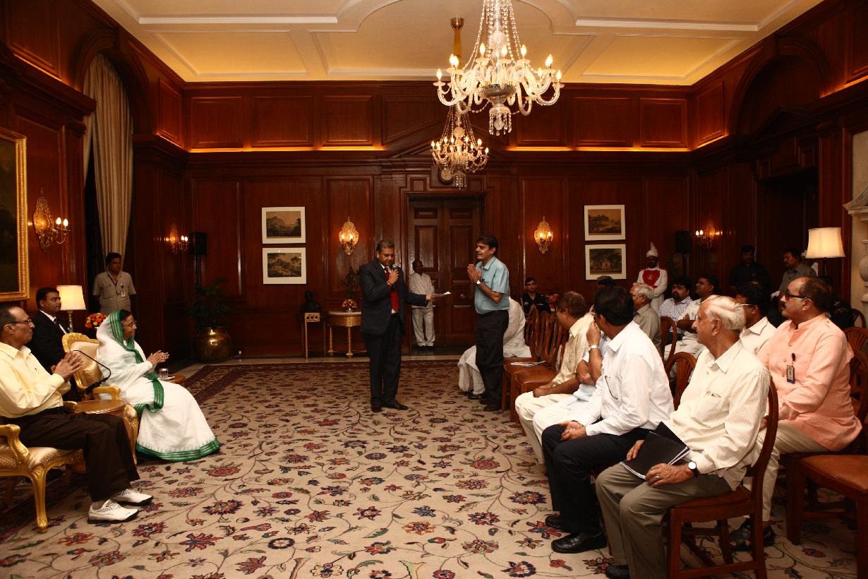 | Caption: | The President of India, Smt Pratibha Devisingh Patil interacting with Shri Prem Bhandari and others at Rashtrapati Bhavan in New Delhi on Aug 23, 2011 |