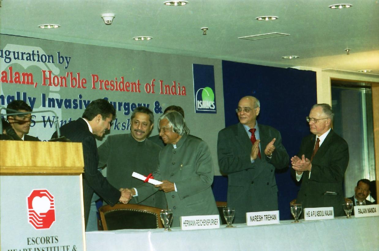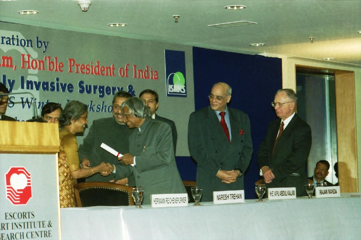 | Caption: | The President of India, Dr A P J Abdul Kalam inaugurating the ''Institute of Minimally Invasive Surgery'' and the First Annual ISMICS Winter Workshop at the Escorts Heart Institute and Research Centre in New Delhi on Dec 13, 2002 |