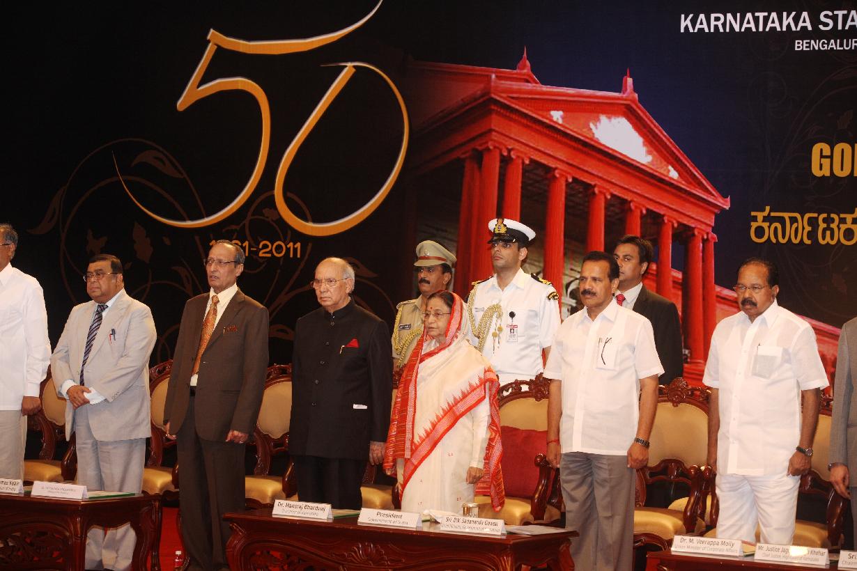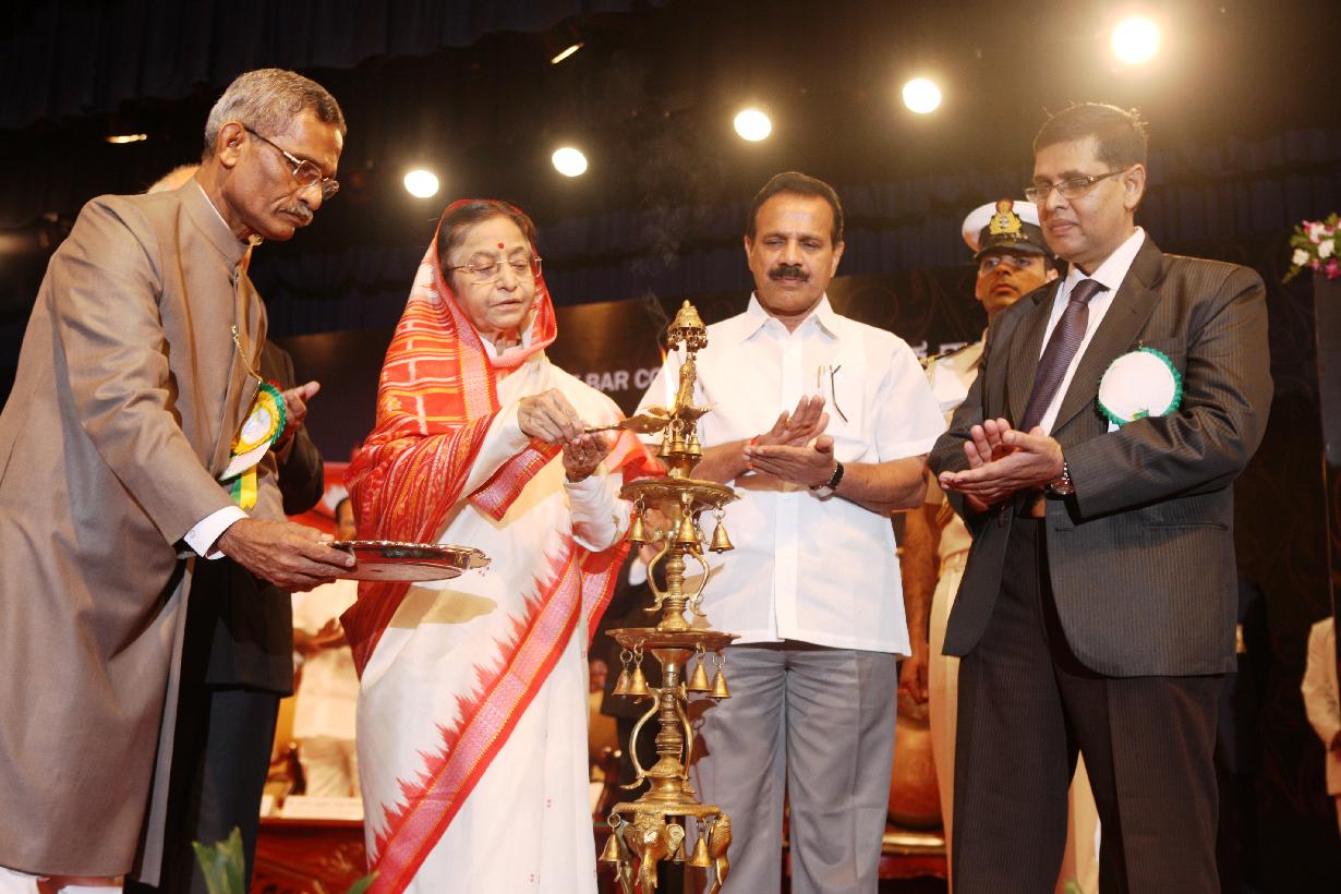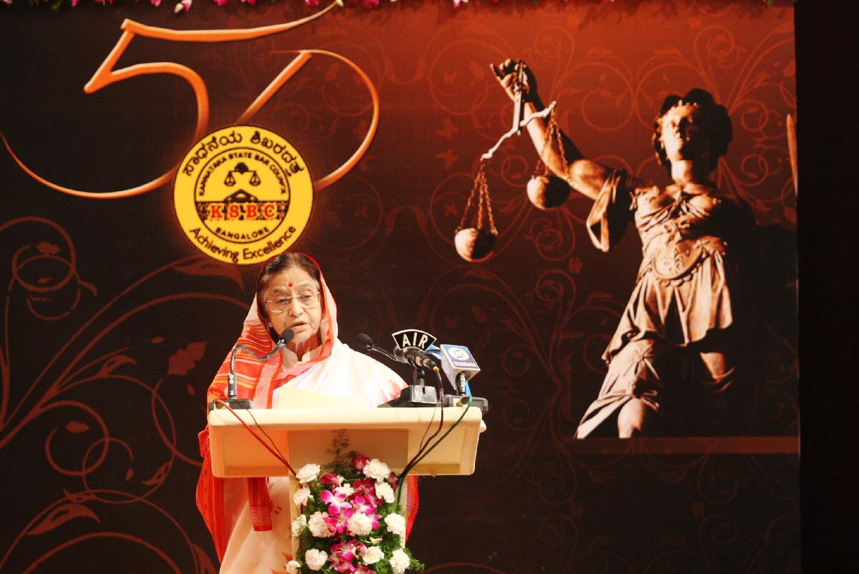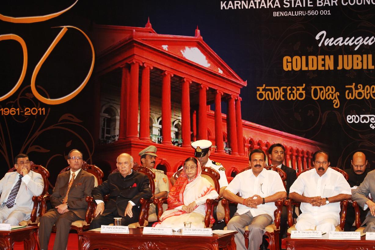 | Caption: | The President of India, Smt Pratibha Devisingh Patil at the occasion of the Golden Jubilee Celebrations of the Karnataka State Bar Council at Bangalore in Karnataka on Aug 06, 2011 |