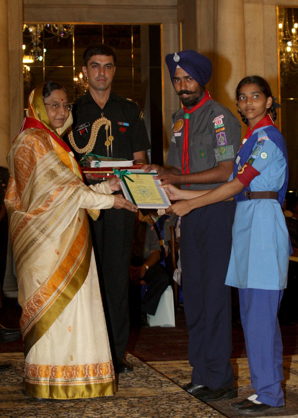 | Caption: | The President of India, Smt Pratibha Devisingh Patil during the Presentation of the Rashtrapati Scouts and Guides Awards Certificates For the year-2010 at Rashtrapati Bhavan in New Delhi on Aug 23, 2011 |