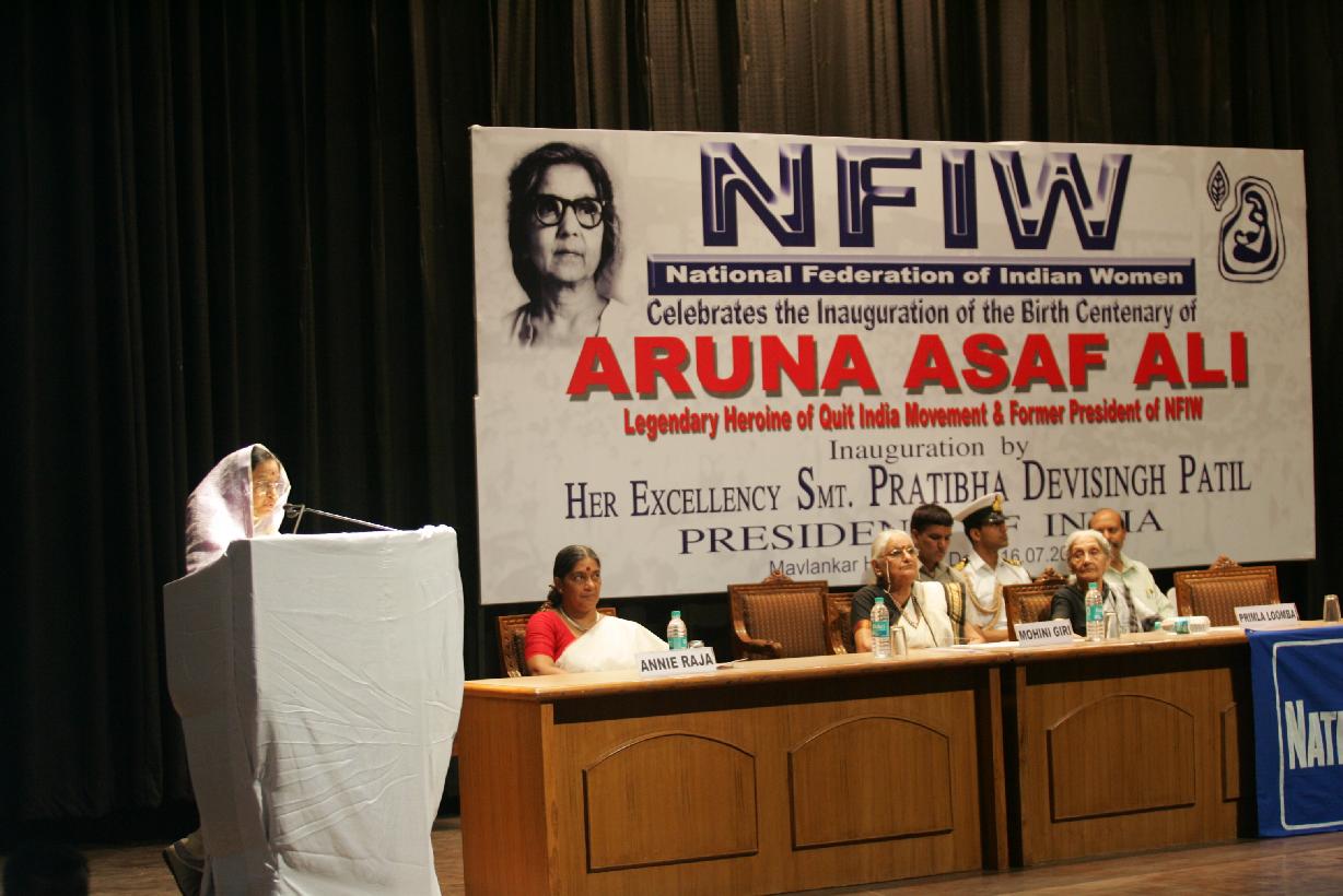 | Caption: | The President of India, Smt Pratibha Devisingh Patil during the Inauguration of the Birth Centenary of Smt Aruna Asaf Ali by National Federation of Indian Women in New Delhi on July 16, 2008 |