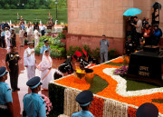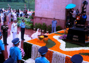 | Caption: | The President of India, Smt Pratibha Devisingh Patil paying tributes at the Amar Jawan Jyoti on the occasion of 65th Independence Day at India Gate in New Delhi on Aug 15, 2011 |