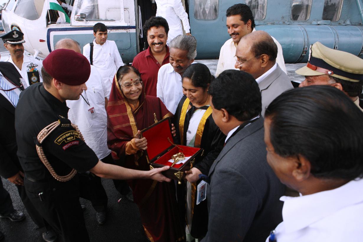 | Caption: | The President of India, Smt Pratibha Devisingh Patil during Arrival at Kollam in Kerala on Aug 29, 2011 |