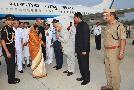 | Caption: | The President of India, Smt Pratibha Devisingh Patil being welcomed by the Governor of Uttarakhand, Shri Banwari Lal Joshi and Chief Minister of Uttarakhand, Shri Ramesh Pokhriyal at Dehradun Jolly Grant Airport in Uttarakhand on July 03, 2009 |