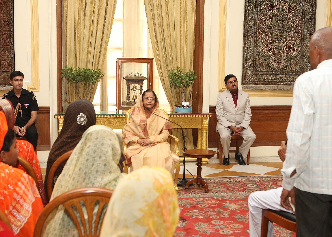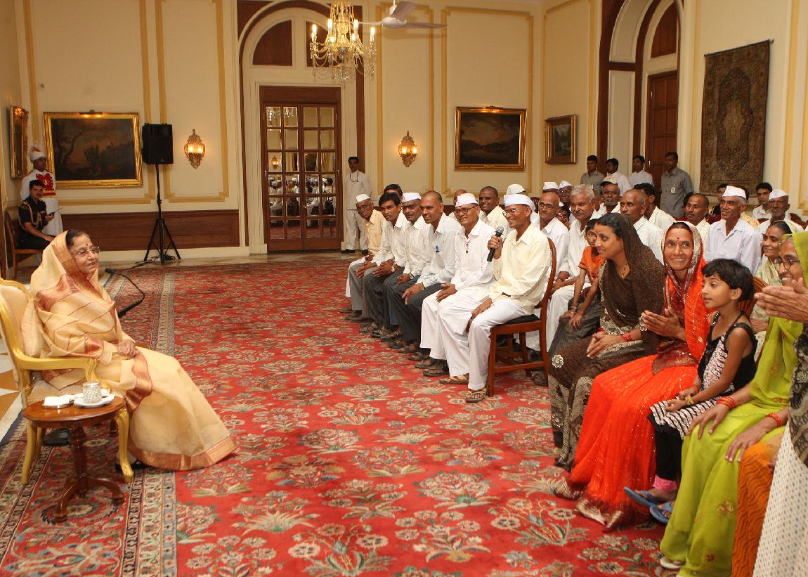 | Caption: | The President of India, Smt Pratibha Devisingh Patil interacting with the Delegation from Sonia Mahila Bachatgat, Nandurbar at Rashtrapati Bhavan in New Delhi on May 03, 2010 |