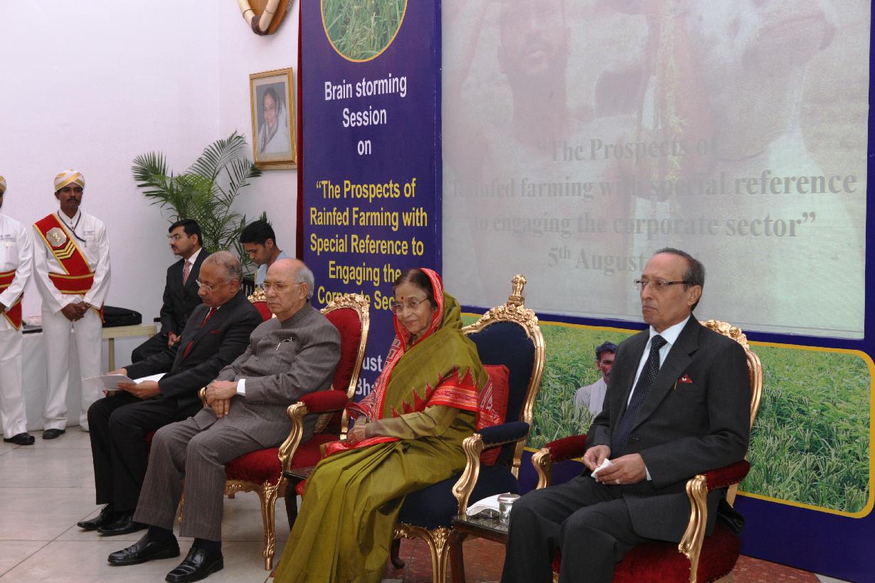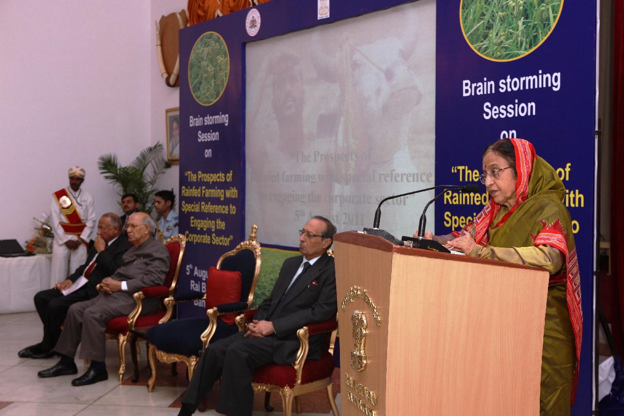 | Caption: | The President of India, Smt Pratibha Devisingh Patil during the Brainstorming Session on Prospects of Rainfed Farming with Special Reference to Engaging the Corporate Sector at Bangalore in Karnataka on Aug 05, 2011 |