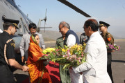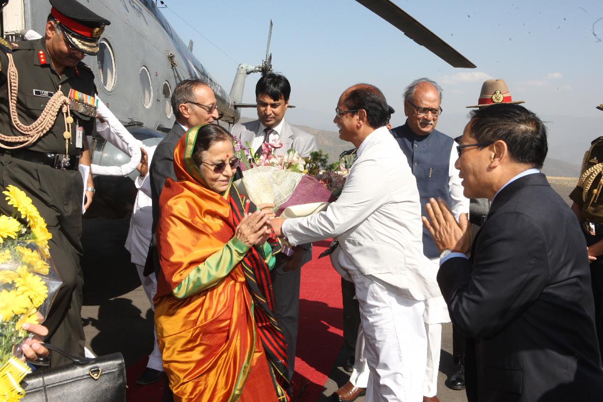 | Caption: | The President of India, Smt Pratibha Devisingh Patil being welcomed by the Governor of Nagaland, Shri Nikhil Kumar at Kohima Airport in Nagaland on March 09, 2011 |