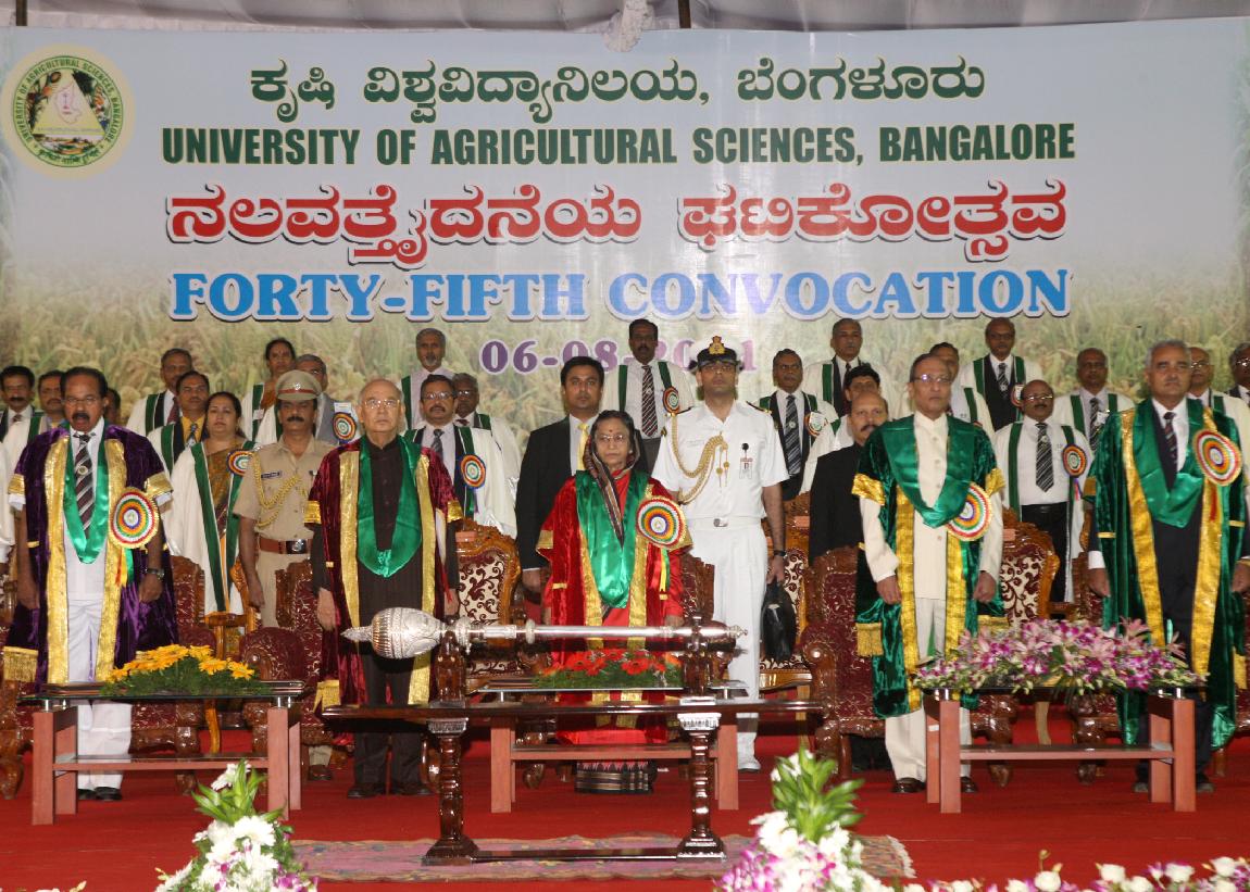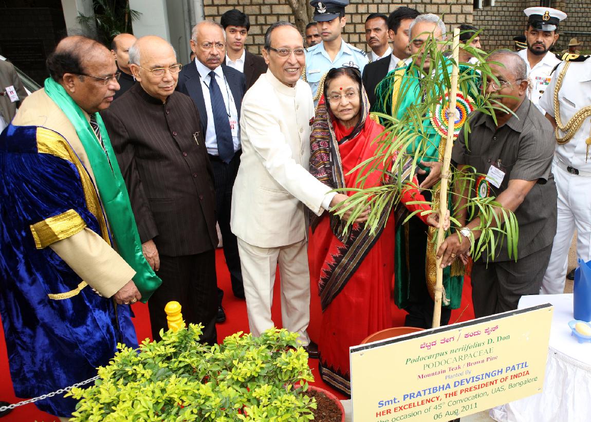 | Caption: | The President of India, Smt Pratibha Devisingh Patil during the 45th Annual Convocation of the University of Agricultural Sciences at Bangalore in Karnataka on Aug 06, 2011 |