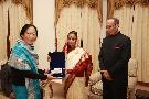 | Caption: | The President of India, Smt Pratibha Devisingh Patil exchanging Gifts with the Governor of Nagaland, Shri Nikhil Kumar at Raj Bhavan of Kohima in Nagaland on March 09, 2011 |