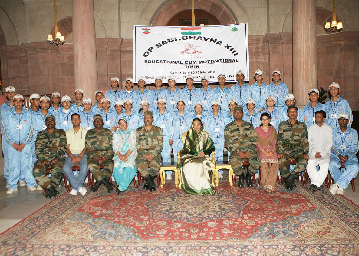 | Caption: | The President of India, Smt Pratibha Devisingh Patil interacting with the Children from Jammu and Kashmir Under 'Operation Sadbhavana' at Rashtrapati Bhavan in New Delhi on May 06, 2010 |