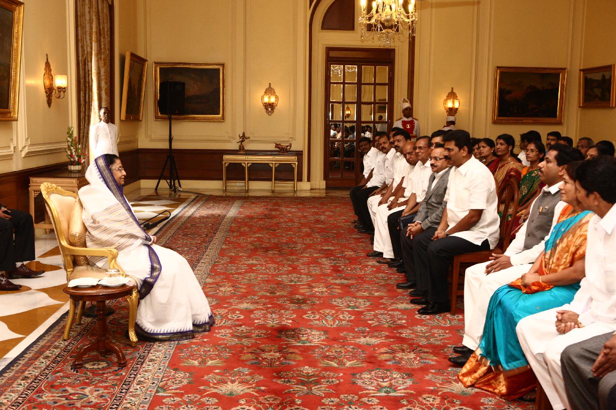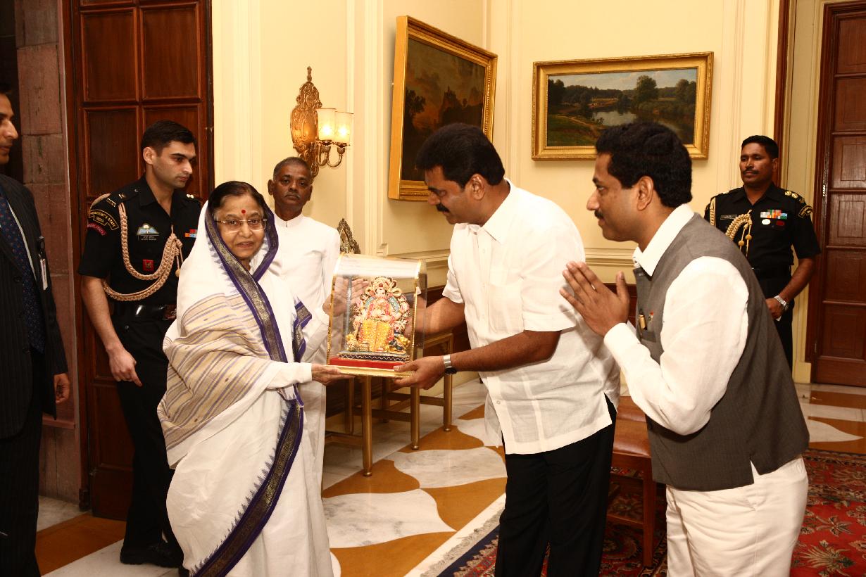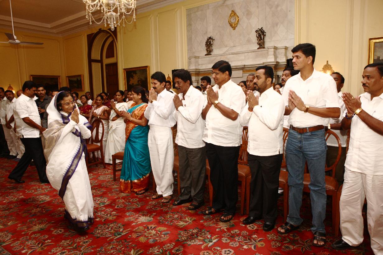 | Caption: | The President of India, Smt Pratibha Devisingh Patil interacting with Dr Sanjeev Ganesh Naik and others at Rashtrapati Bhavan in New Delhi on Aug 18, 2011 |