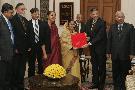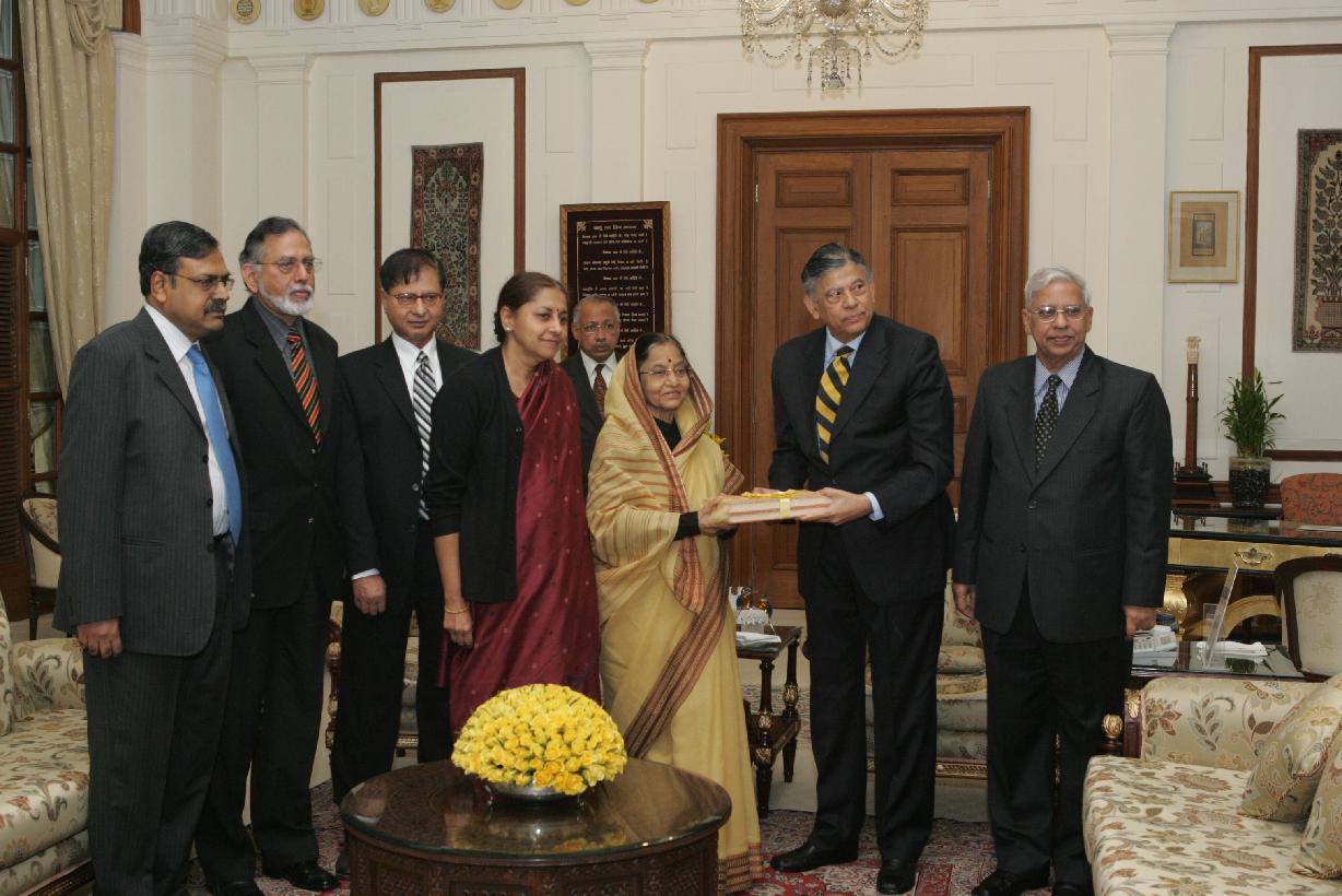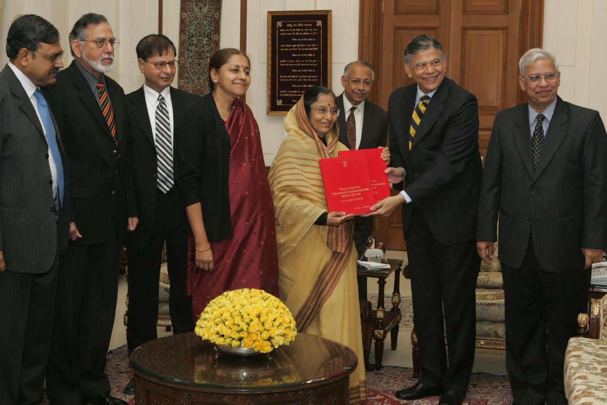 | Caption: | The President of India, Smt Pratibha Devisingh Patil receiving the Report of the 13th Finance Commission from the Chairman of the Commission, Dr Vijay Kelkar at Rashtrapati Bhavan in New Delhi on Dec 30, 2009 |
