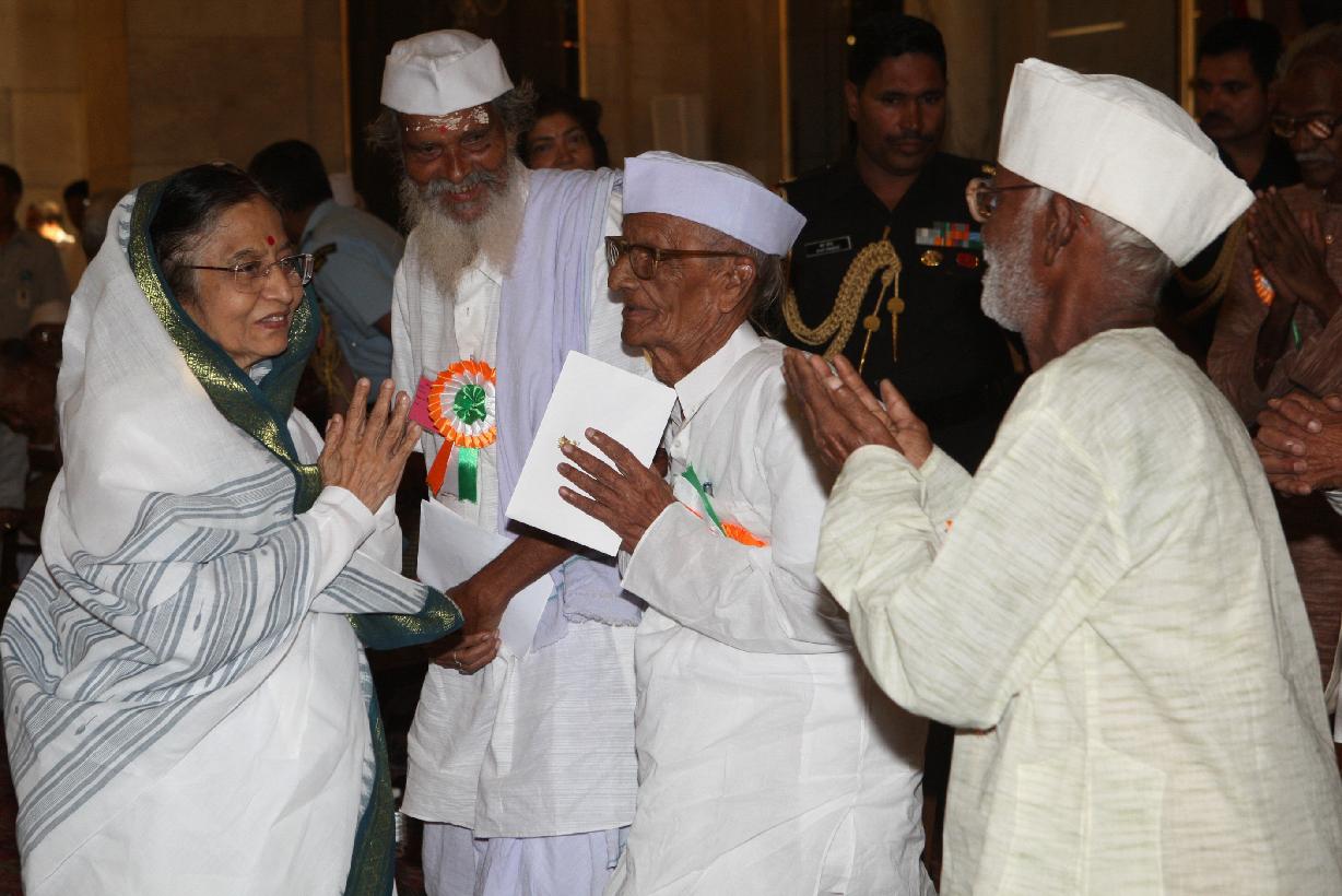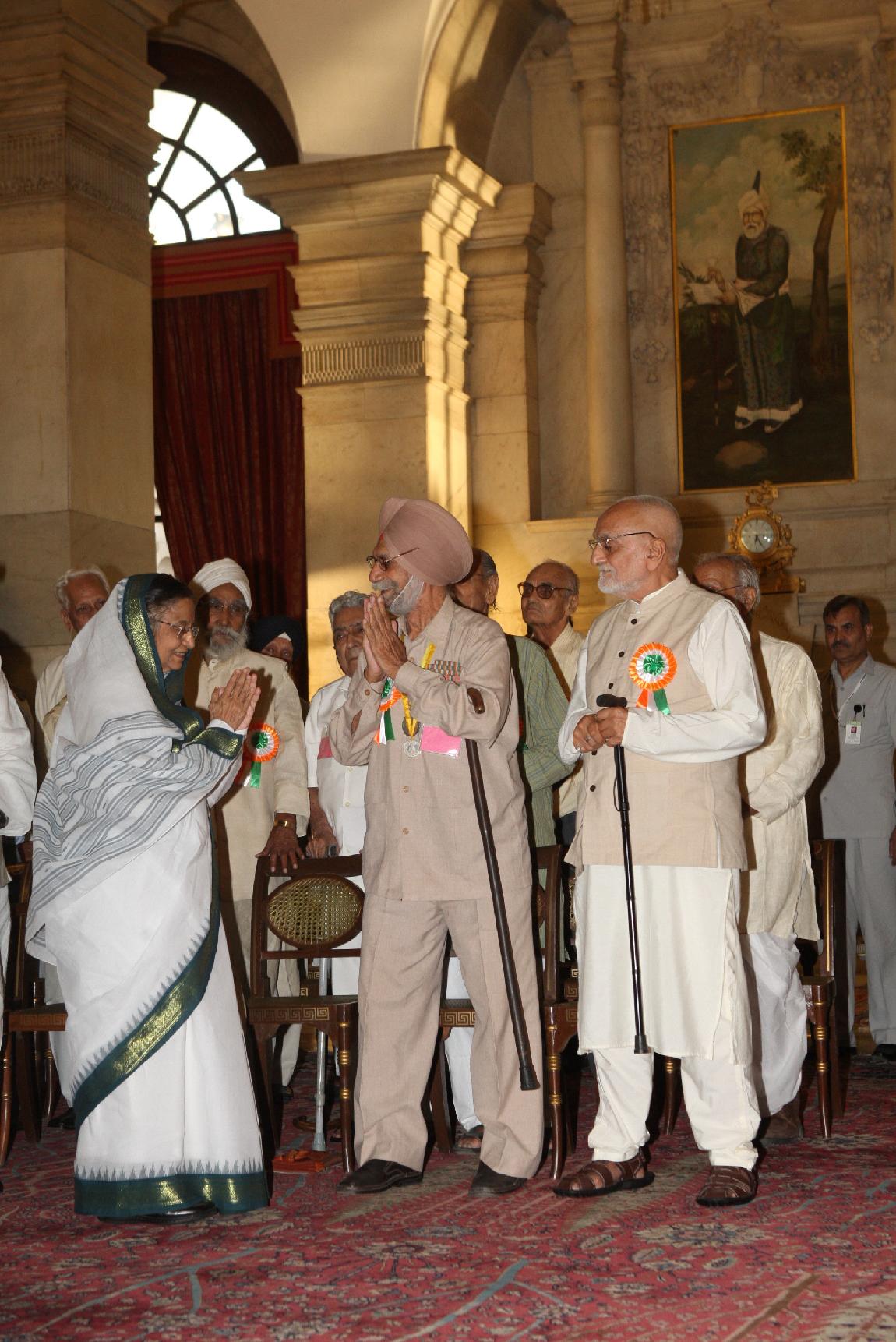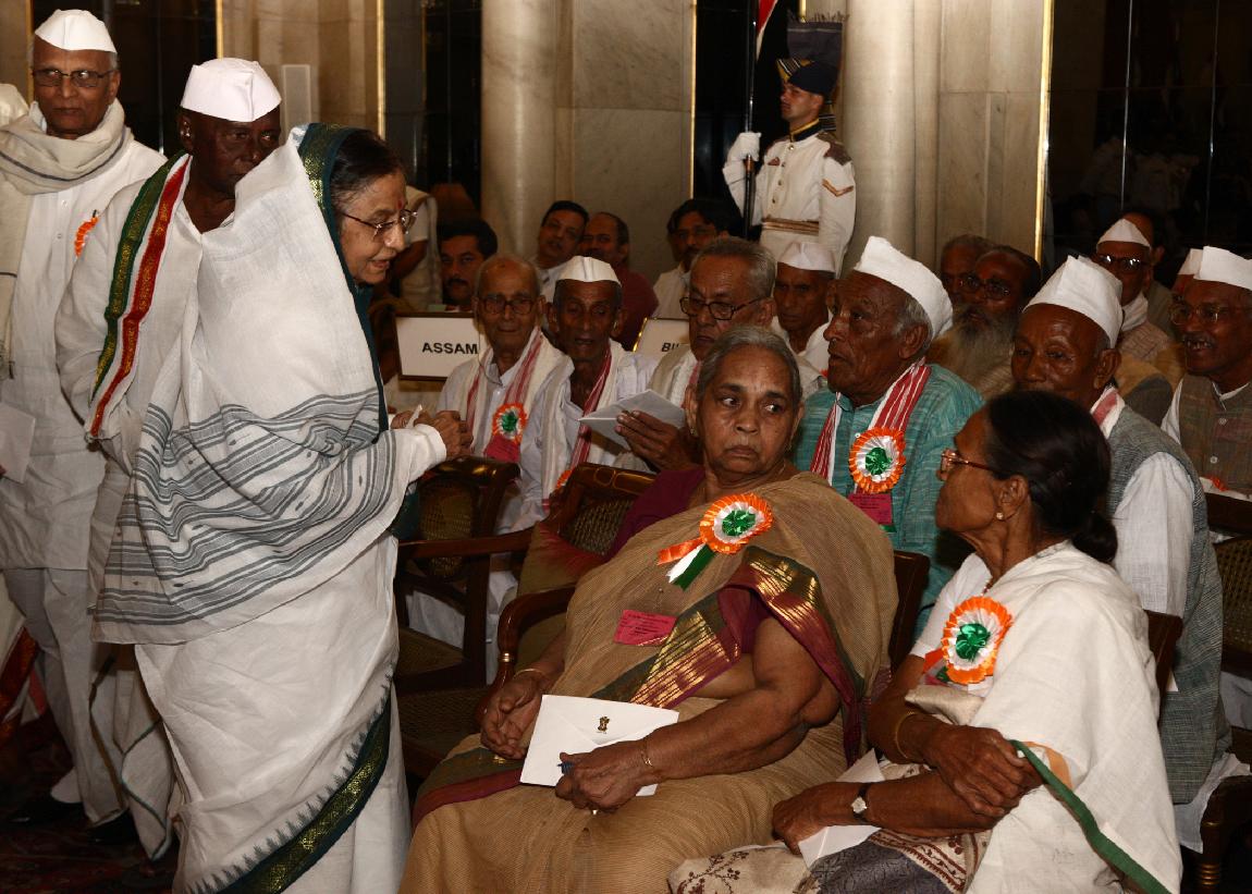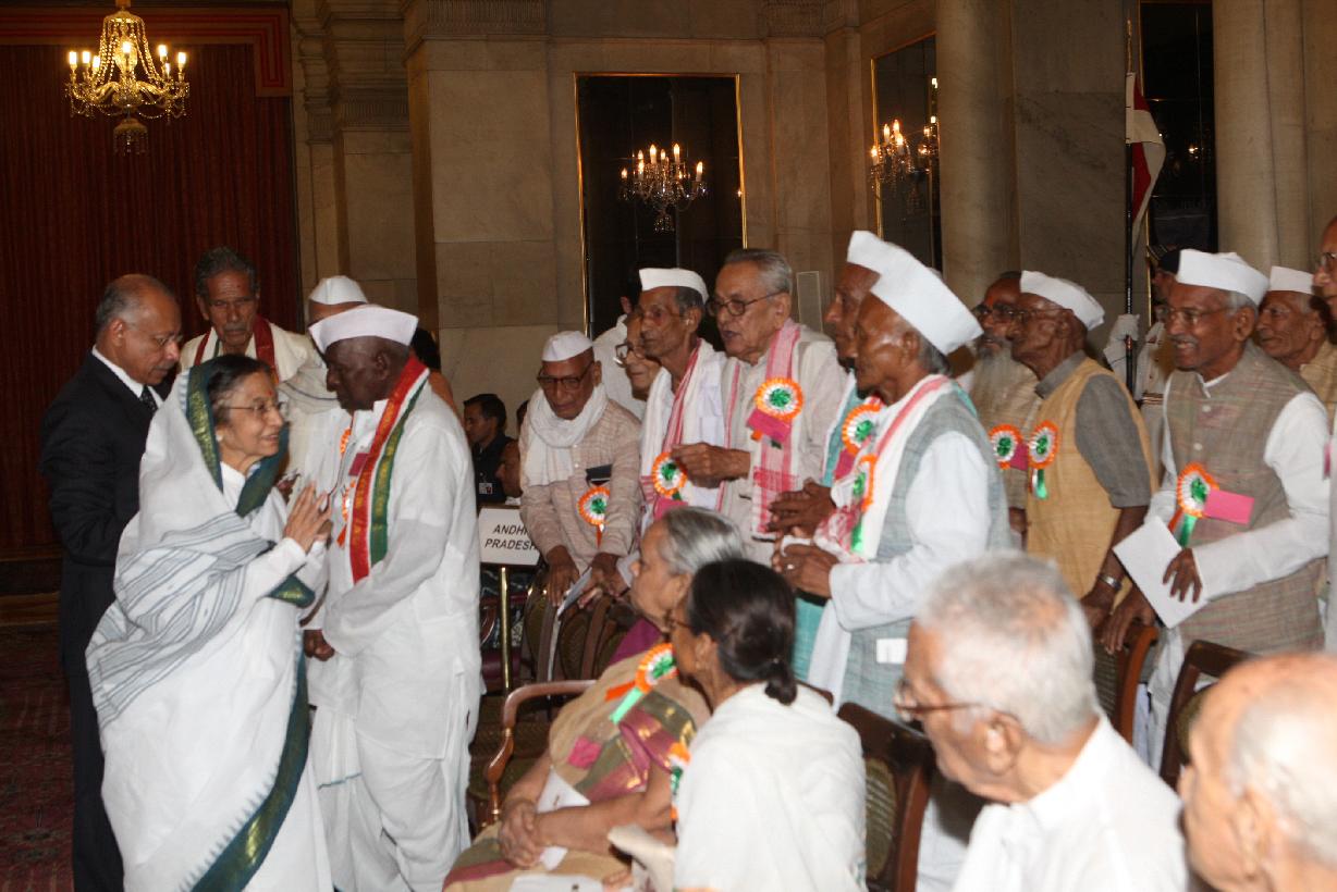 | Caption: | The President of India Smt Pratibha Devisingh Patil interacting with the Freedom Fighters on the occasion of Freedom Fighter Day at Rashtrapati Bhavan in New Delhi on Aug 09, 2011 |