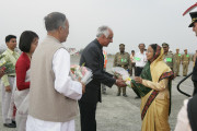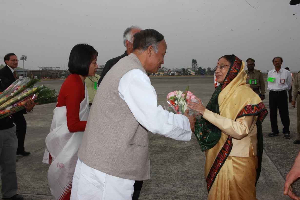 | Caption: | The President of India, Smt Pratibha Devisingh Patil being welcomed by the Governor of Manipur, Shri Gurbachan Jagat and Chief Minister of Manipur, Shri Okram Ibobi Singh at Imphal Airport in Manipur on March 10, 2011 |