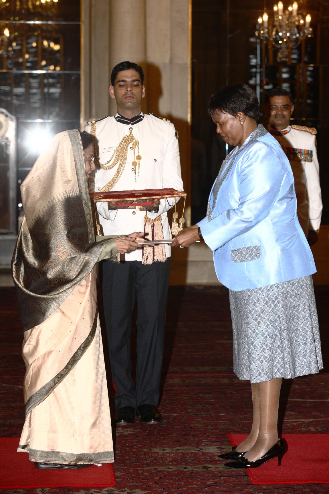 | Caption: | The High Commissioner Designate of Botswana, HE Ms Lesego Ethel Motsumi presenting her credentials to the President of India, Smt Pratibha Devisingh Patil at Rashtrapati Bhavan in New Delhi on Aug 12, 2011 |