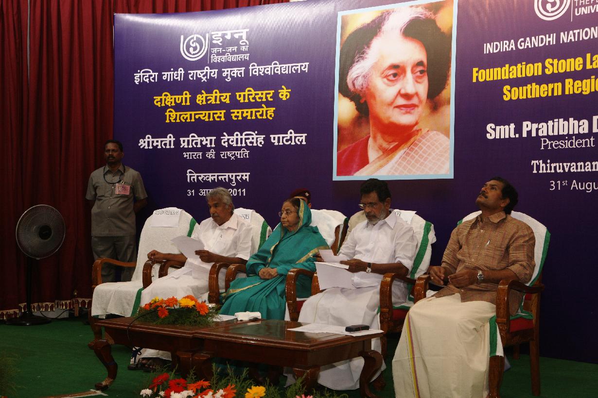 | Caption: | The President of India, Smt Pratibha Devisingh Patil during the Foundation Stone of Indira Gandhi National Open University at Kollam in Kerala on Aug 31, 2011 |