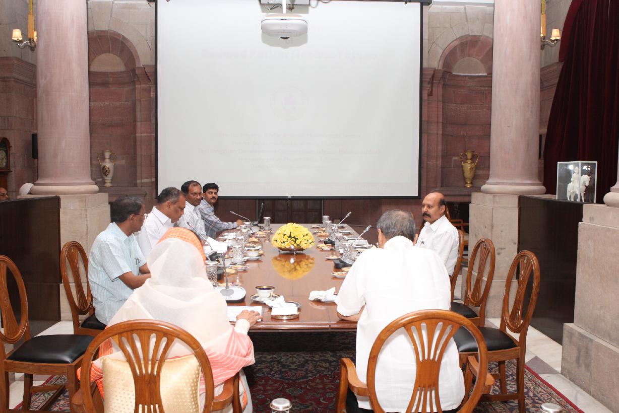 | Caption: | The President of India, Smt Pratibha Devisingh Patil during the Presentation on Bodwad Lift Irrigation Scheme at Rashtrapati Bhavan in New Delhi on May 11, 2010 |