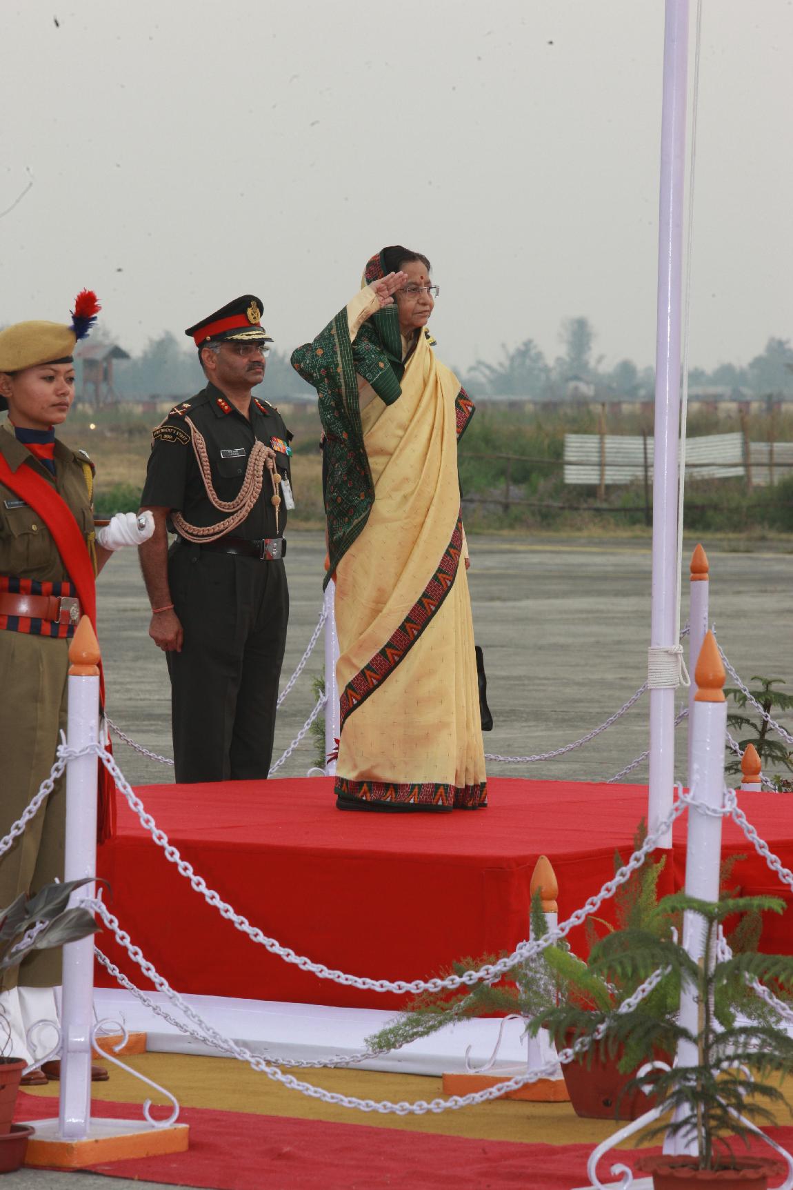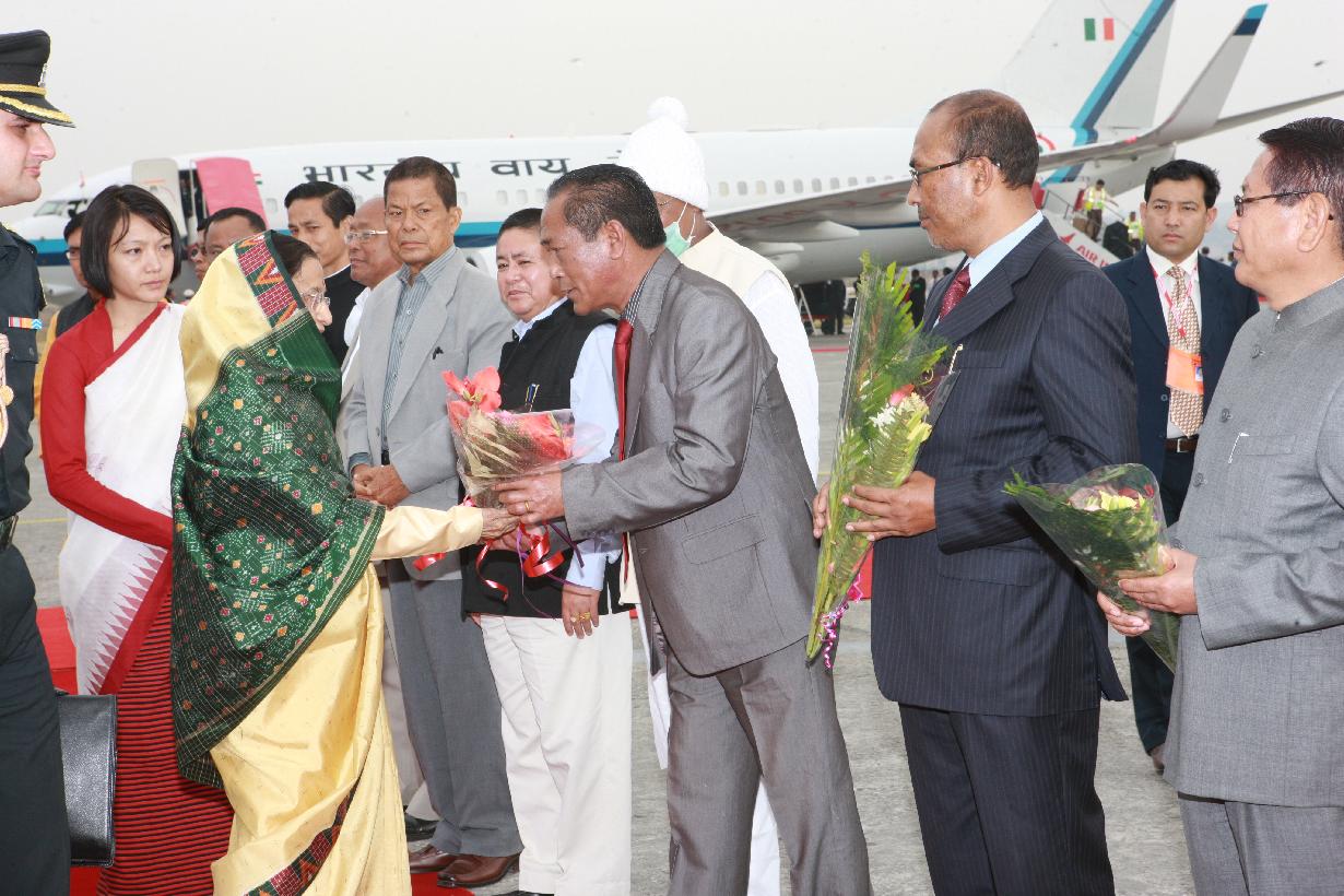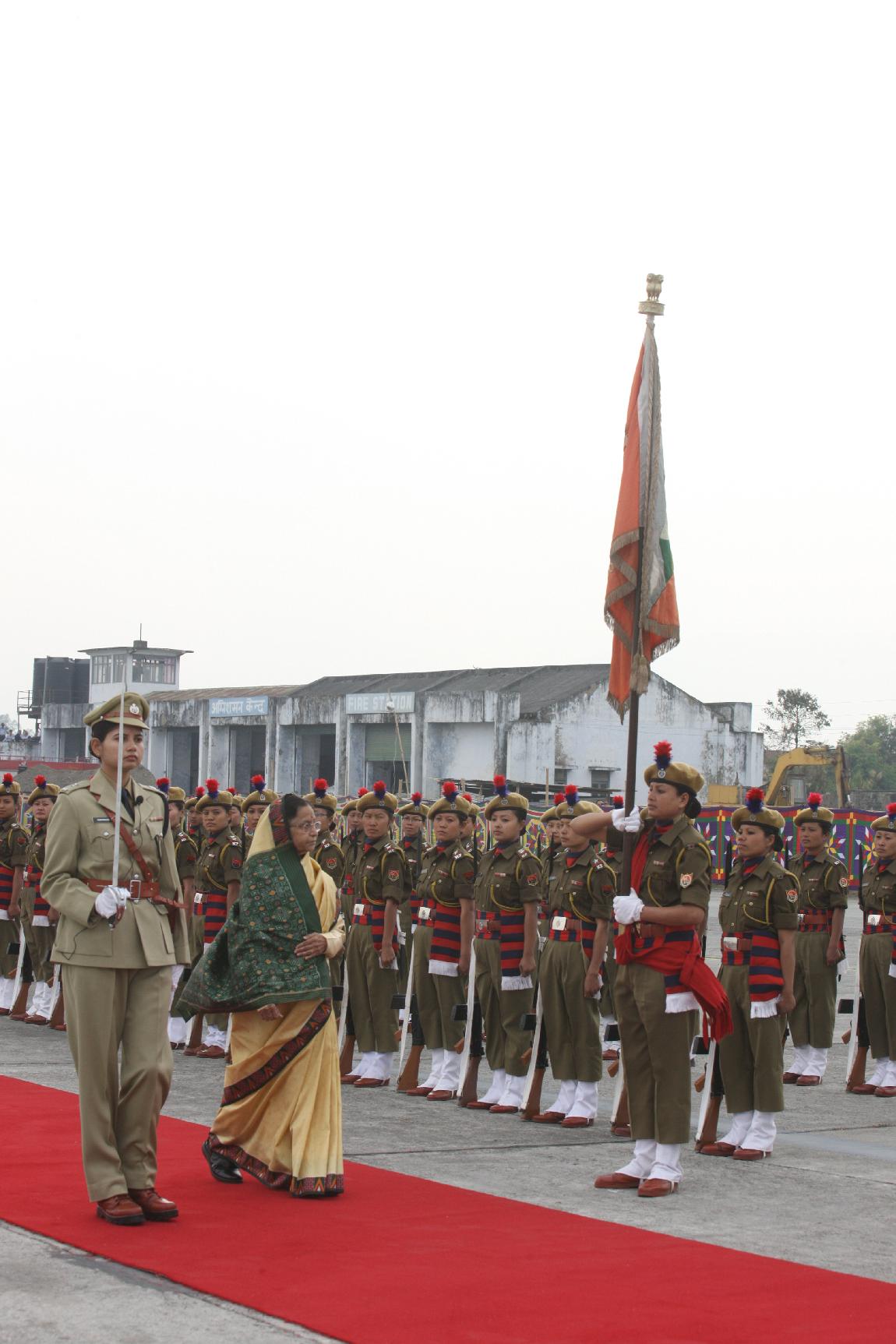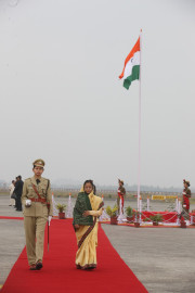 | Caption: | The President of India, Smt Pratibha Devisingh Patil inspecting Guard of Honour and attending Reception at Imphal Airport in Manipur on March 10, 2011 |