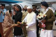 | Caption: | The President of India, Smt Pratibha Devisingh Patil being welcomed by the Governor of Punjab, Shri Shivraj Patil and Chief Minister of Punjab, Shri Parkash Singh Badal at Chandigarh Airport in Punjab on March 17, 2011 |