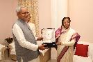 | Caption: | The President of India, Smt Pratibha Devisingh Patil exchanging Gifts with the Governor of Bihar, Shri Devanand Konwar and Chief Minister, Shri Nitish Kumar at Patna in Bihar on March 22, 2011 |