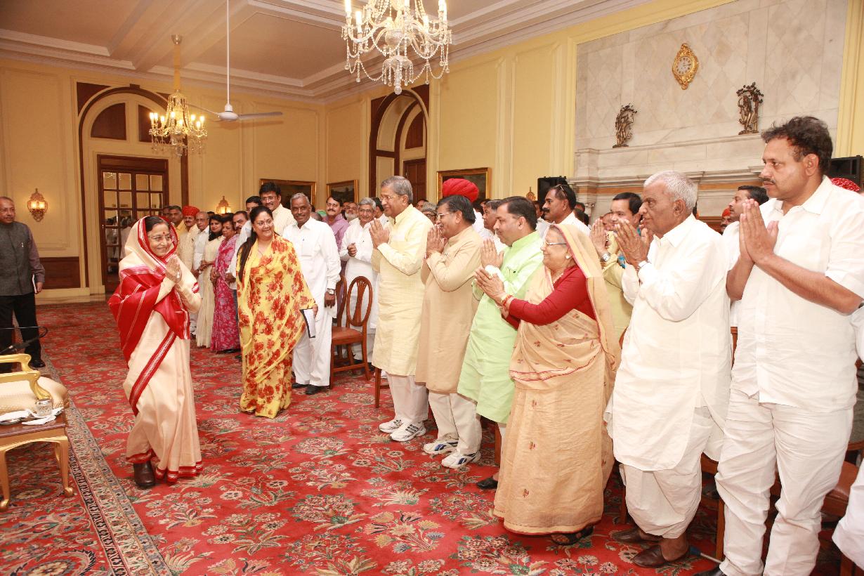 | Caption: | The President of India, Smt Pratibha Devisingh Patil interacting with the Delegates from Bhartiya Janta Party MLAs from Rajasthan led by Smt Vasundhara Raje at Rashtrapati Bhavan in New Delhi on March 24, 2011 |