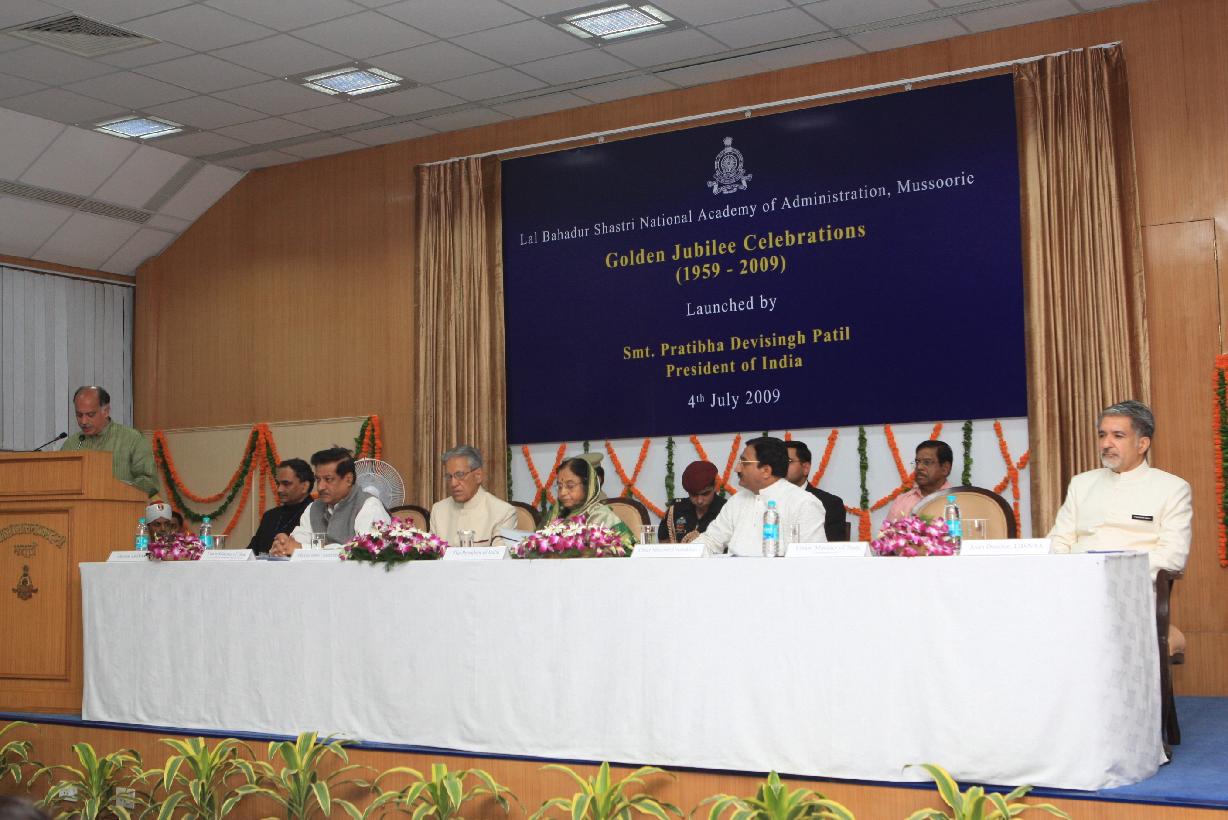 | Caption: | The President of India, Smt Pratibha Devisingh Patil releasing the Commemorative Postage Stamp during a Function of Lal Bahadur Shastri National Academy of Administration,Mussoorie at Dehradun in Uttarakhand on July 04, 2009 |