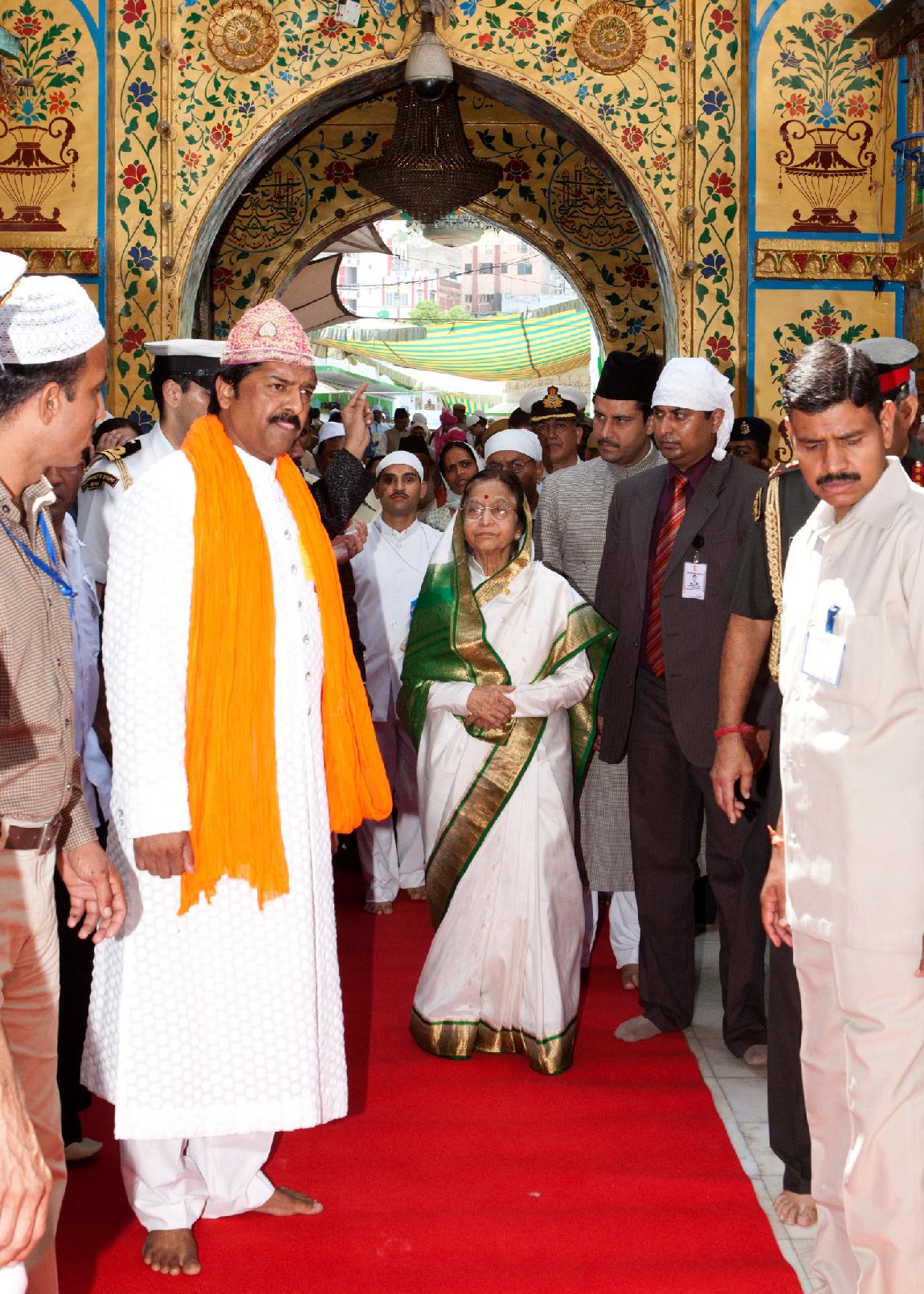 | Caption: | The President of India, Smt Pratibha Devisingh Patil during arrival at the Holy Shrine of Hazrat Khwaja Moinuddin Hasan Chishty at Ajmer in Rajasthan on Sep 19, 2011 |
