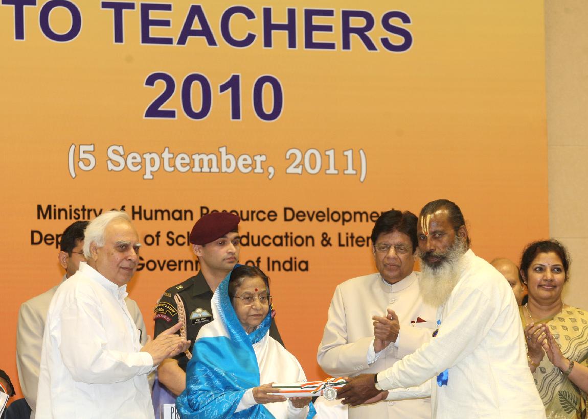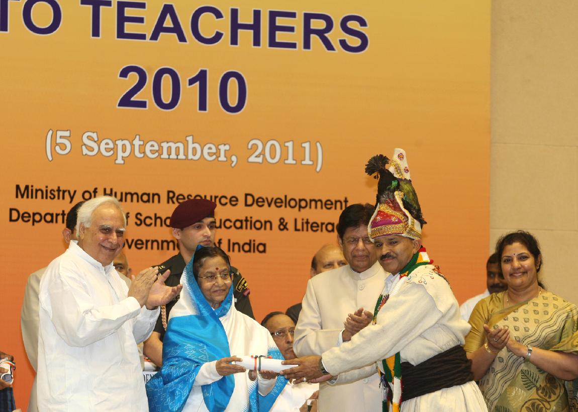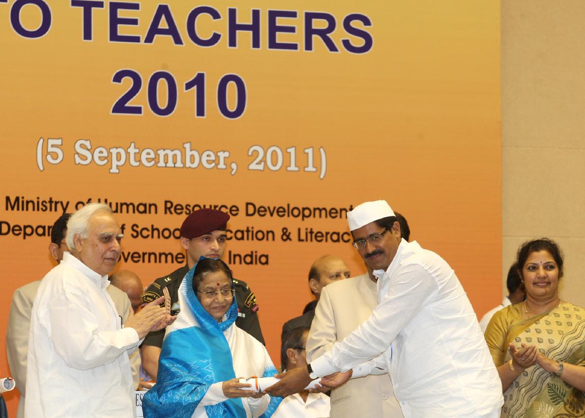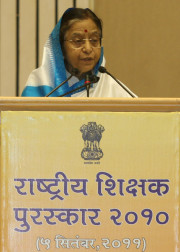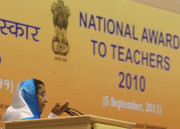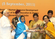 | Caption: | The President of India, Smt Pratibha Devisingh Patil presenting the National Award for Teacher-2010, on the occasion of Teacher s Day at Vigyan Bhavan in New Delhi on Sep 05, 2011 |
