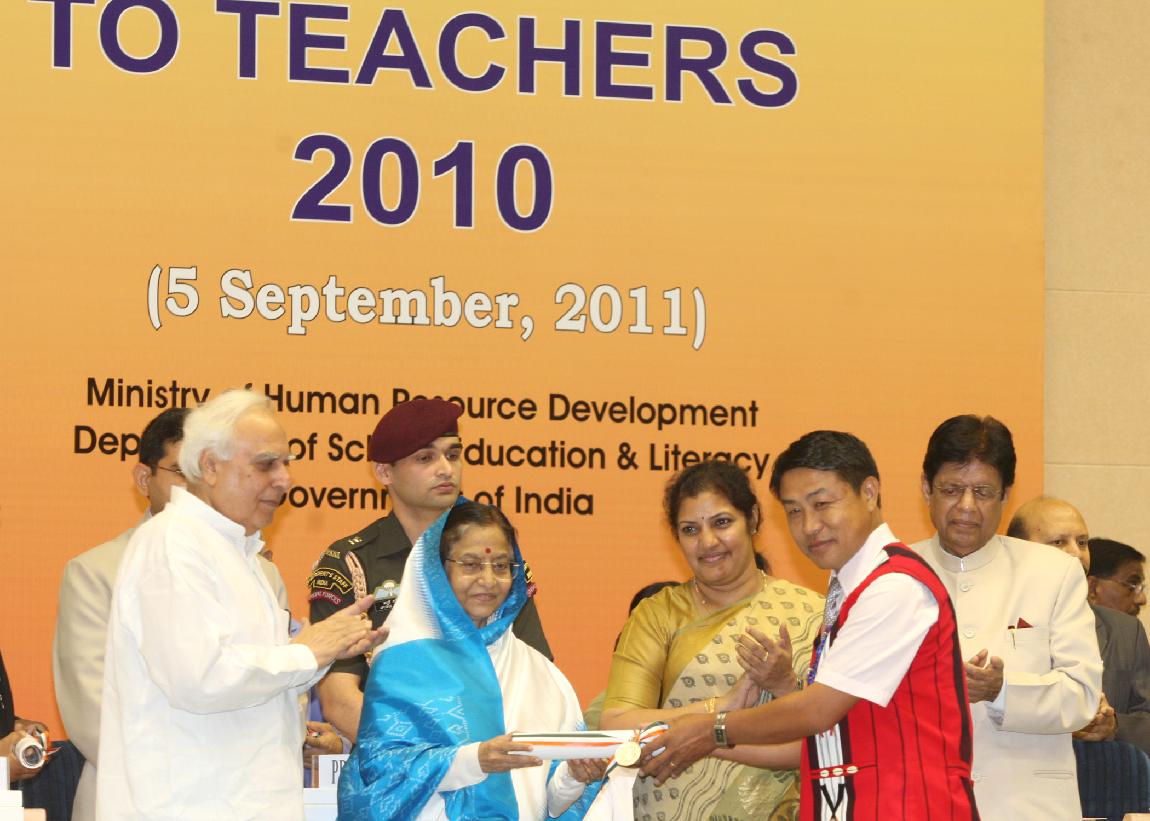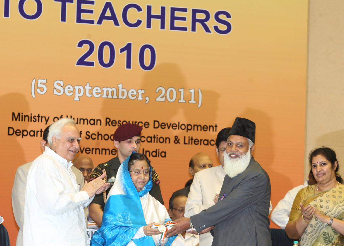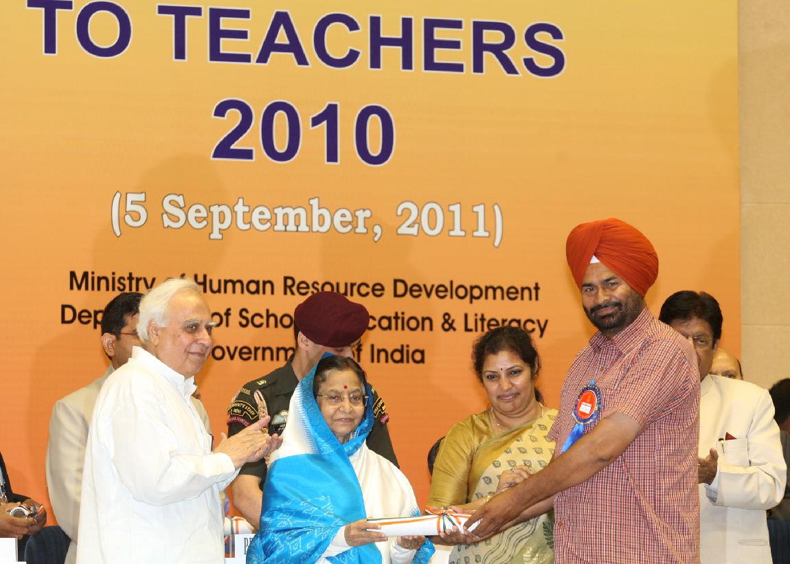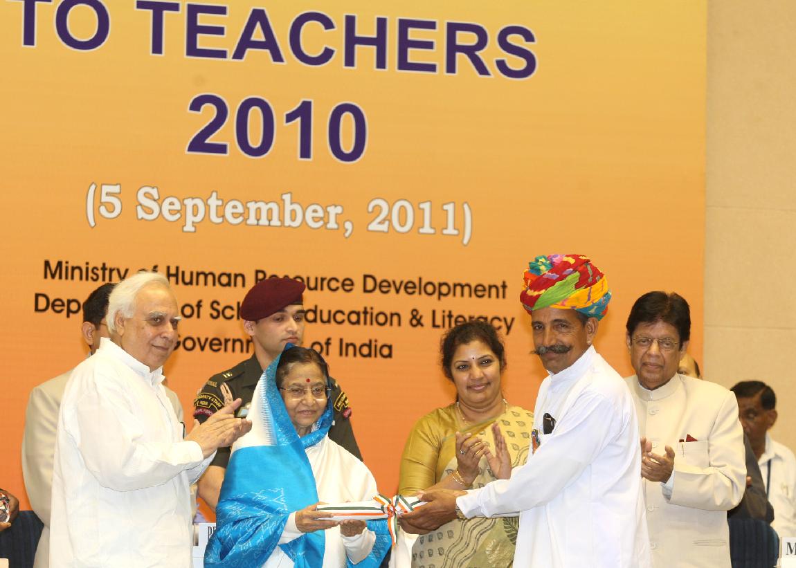 | Caption: | The President of India, Smt Pratibha Devisingh Patil presenting the National Award for Teacher-2010, on the occasion of Teacher s Day at Vigyan Bhavan in New Delhi on Sep 05, 2011 |