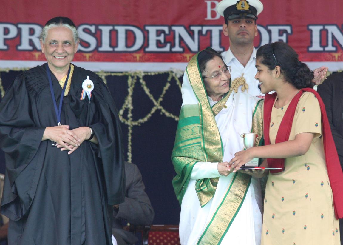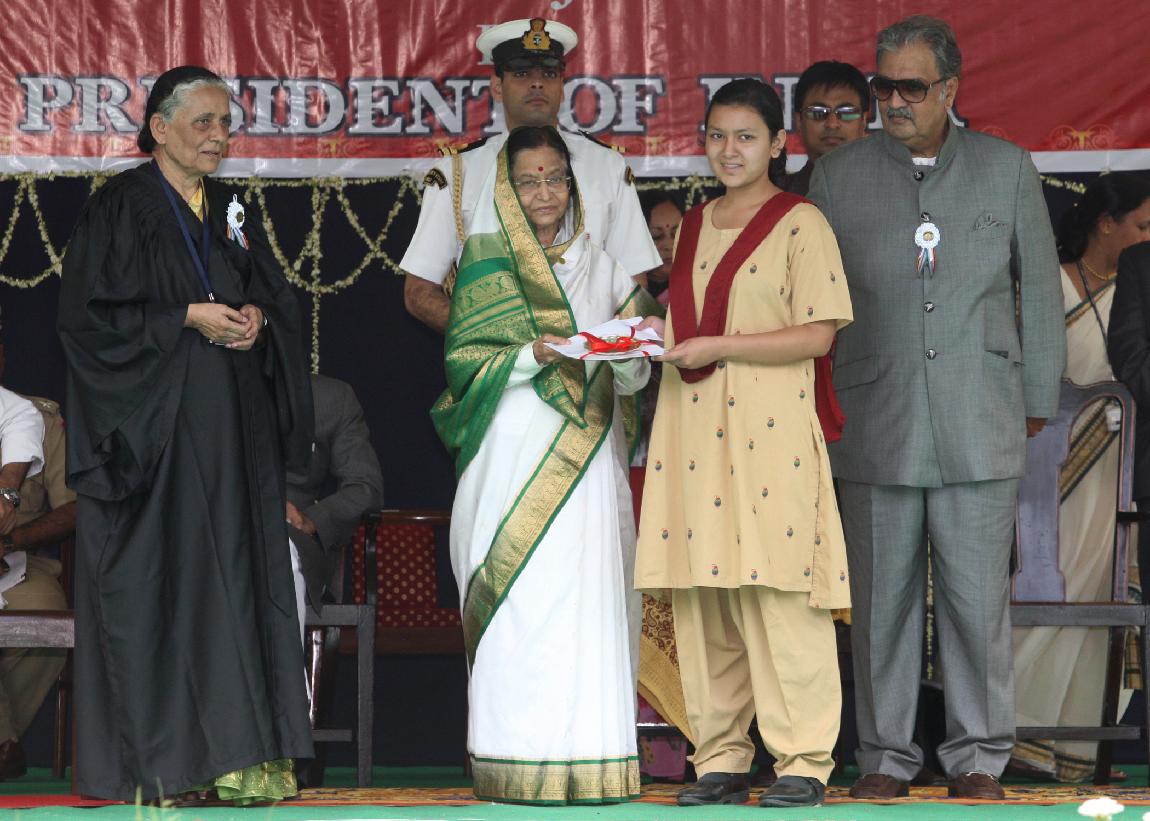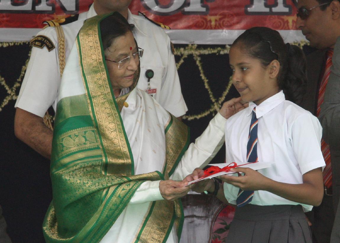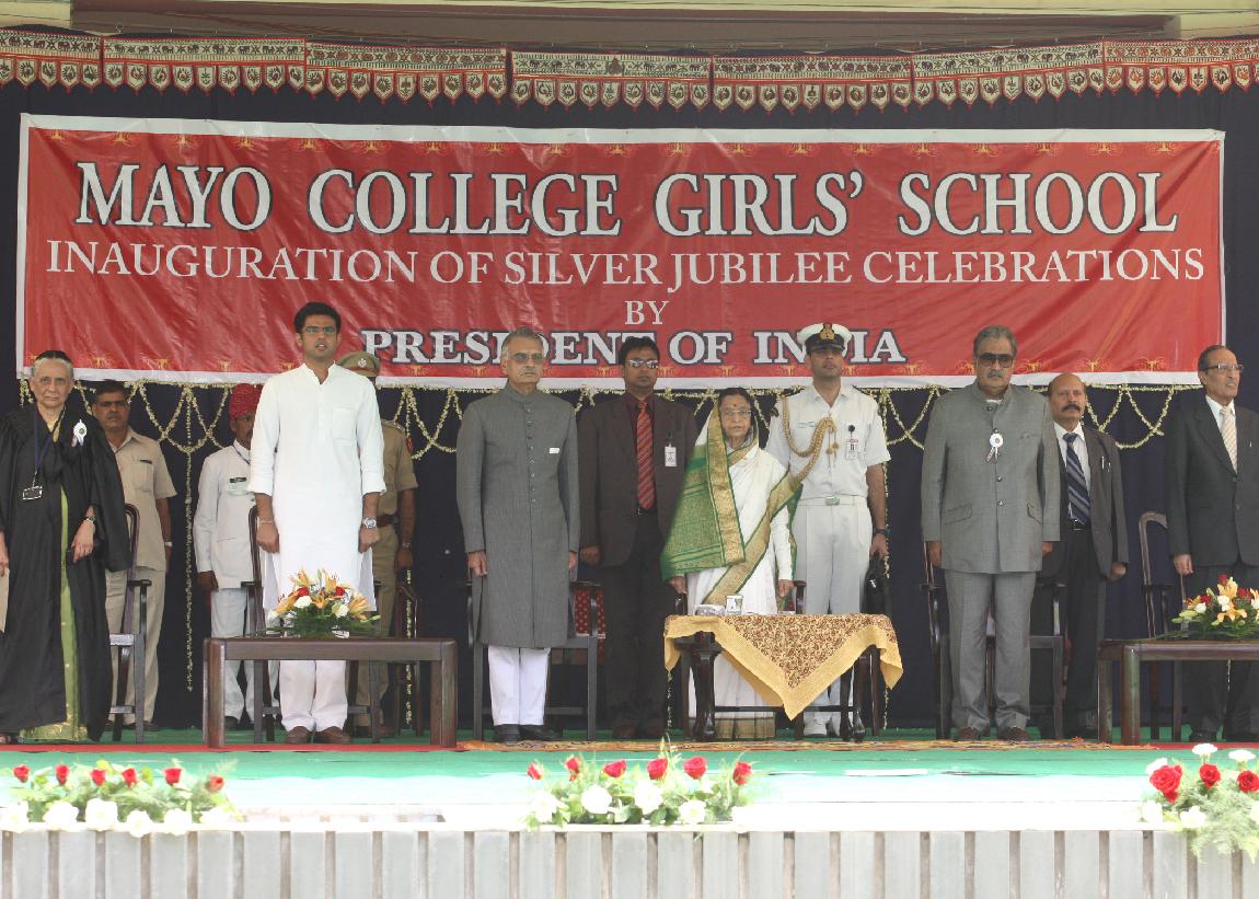| Caption: | The President of India, Smt Pratibha Devisingh Patil presenting Prize to the Students of Mayo College Girls School on the occasion of the Silver Jubilee Function of the School at Ajmer in Rajasthan on Sep 19, 2011 |