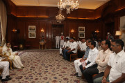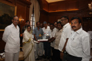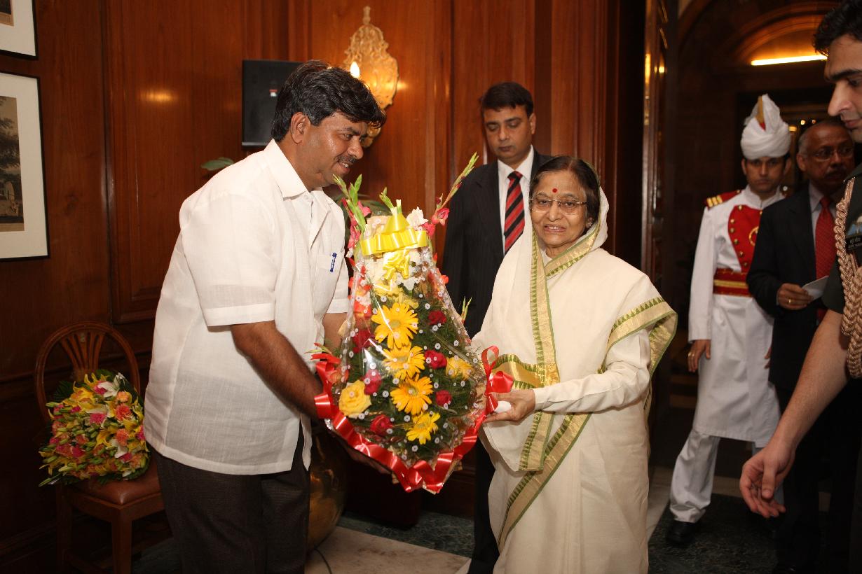 | Caption: | The President of India, Smt Pratibha Devisingh Patil interacting with Shri Someswar Pusatkar and others at Rashtrapati Bhavan in New Delhi on Sep 06, 2011 |