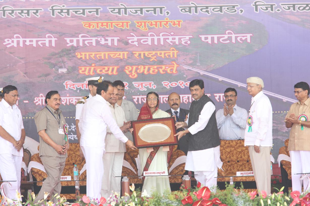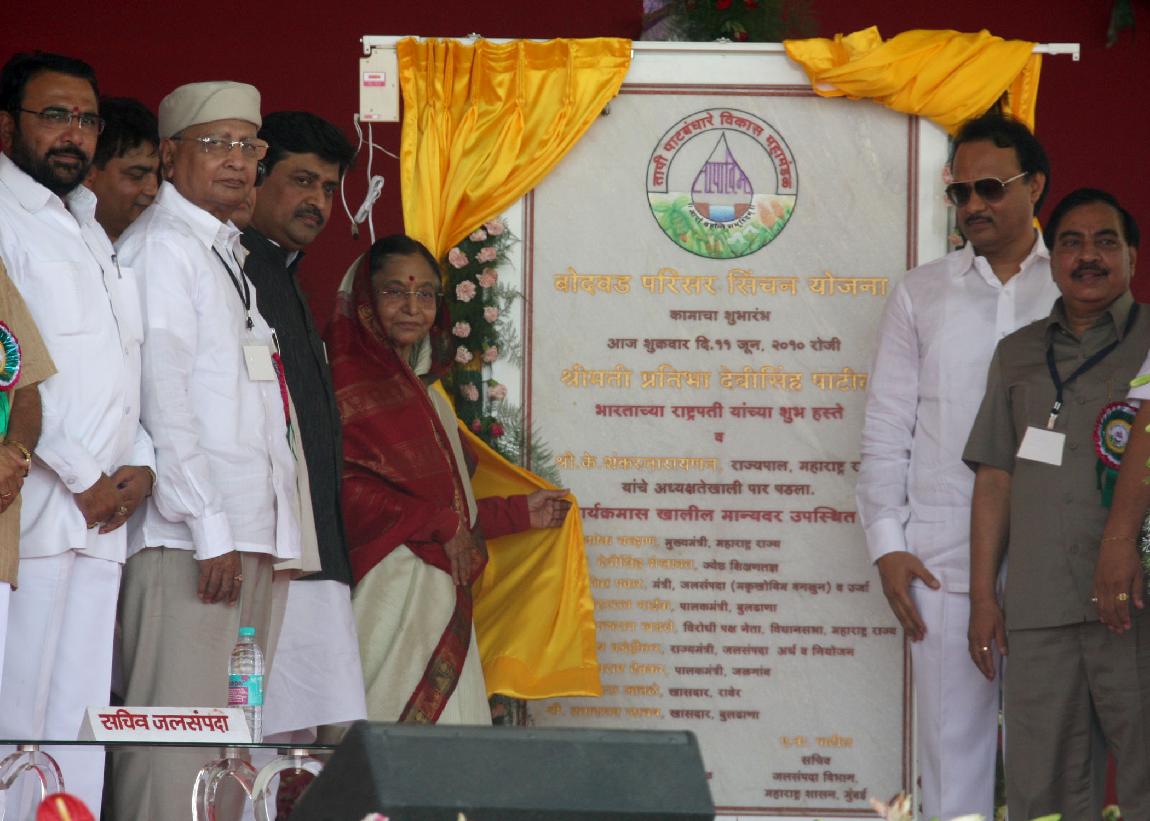 | Caption: | The President of India, Smt Pratibha Devisingh Patil at the Bodwad Lift Irrigation Scheme Commencement of Work at Bodwad in Maharashtra on June 11, 2010 |