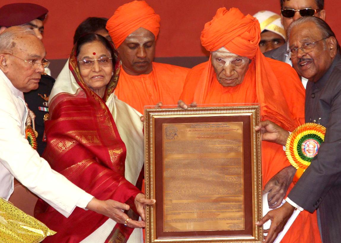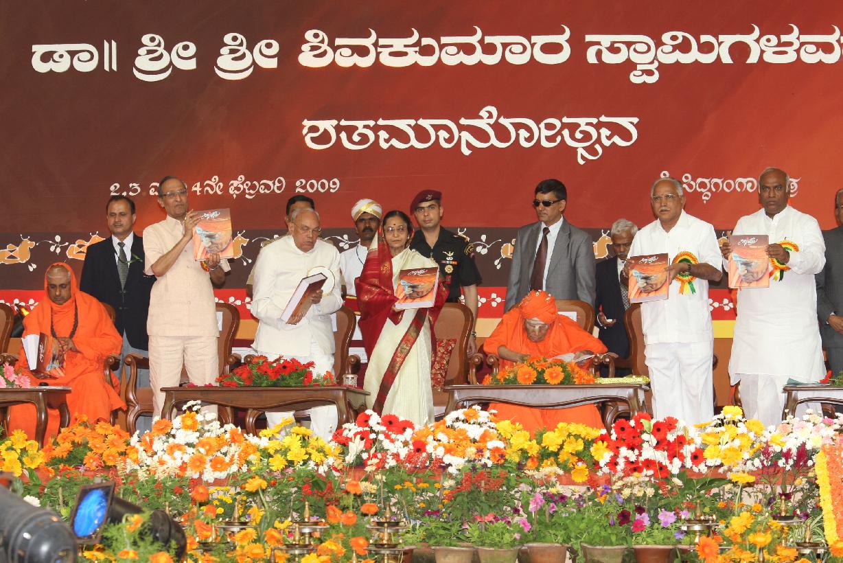 | Caption: | The President of India, Smt Pratibha Devisingh Patil inaugurating the 101 Birthday Celebrations of Shivakumara Swamiji of Siddaganga Math at Tumkur in Karnataka on Feb 02, 2009 |