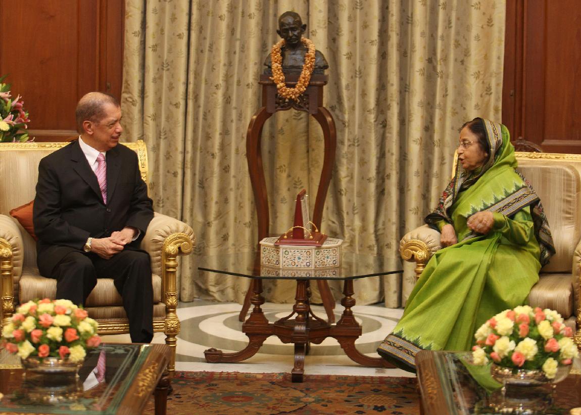 | Caption: | The President of Seychelles, HE Mr James Alix Michel calling on the President of India, Smt Pratibha Devisingh Patil at Rashrapati Bhavan in New Delhi on June 02, 2010 |