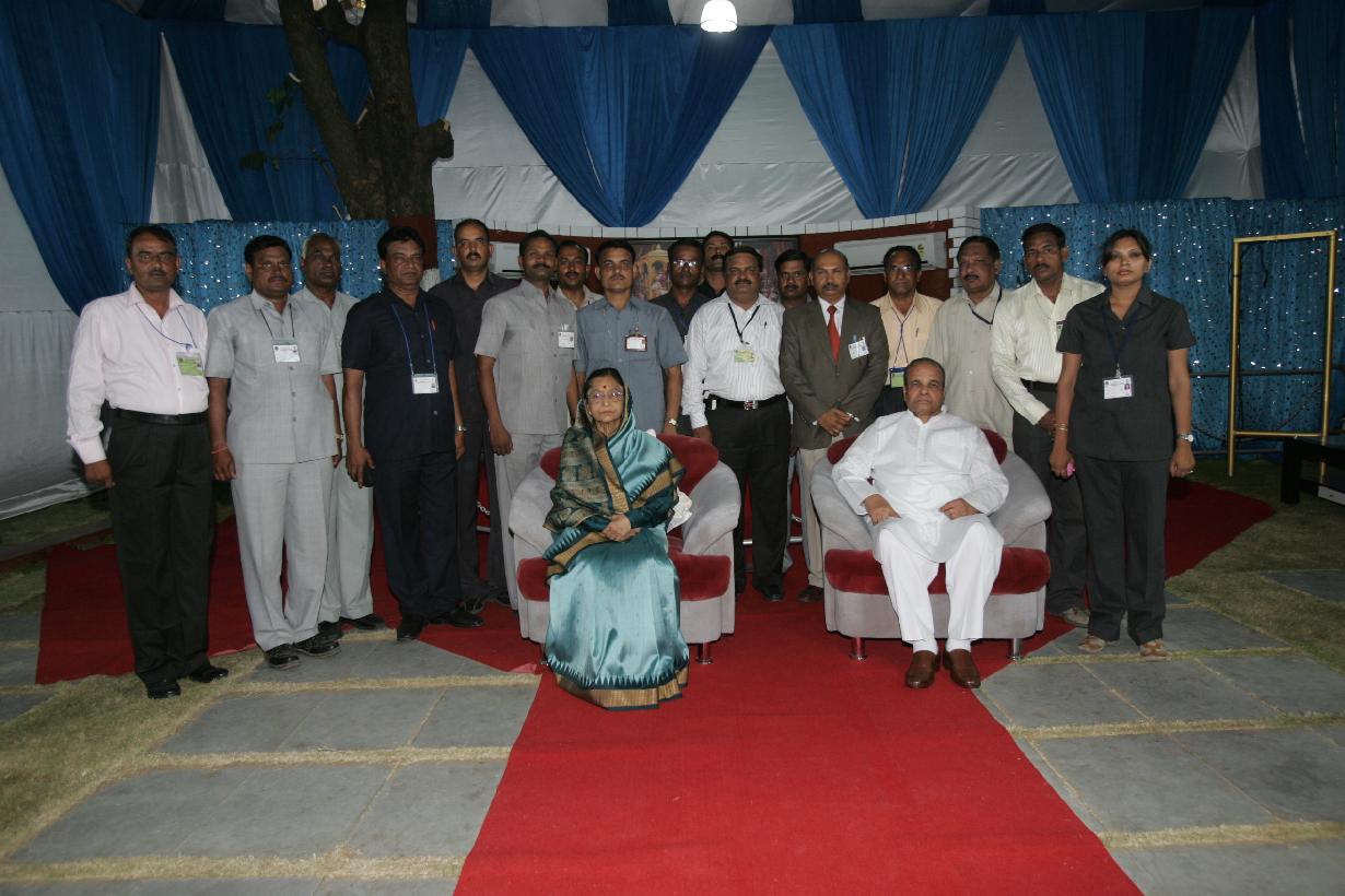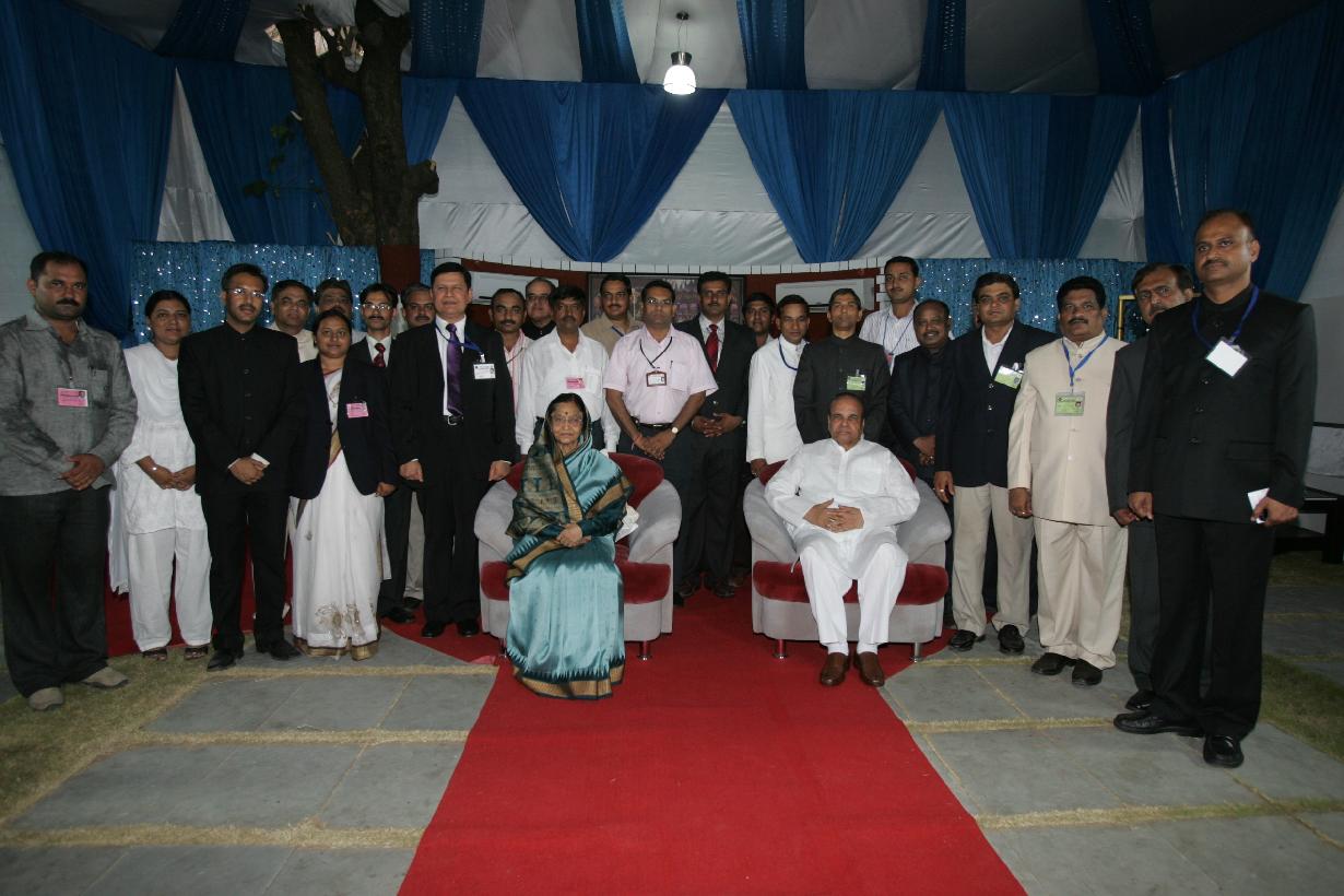 | Caption: | The President of India, Smt Pratibha Devisingh Patil posing for a Group Photographs at Ajantha Guest House in Maharashtra on June 13, 2010 |