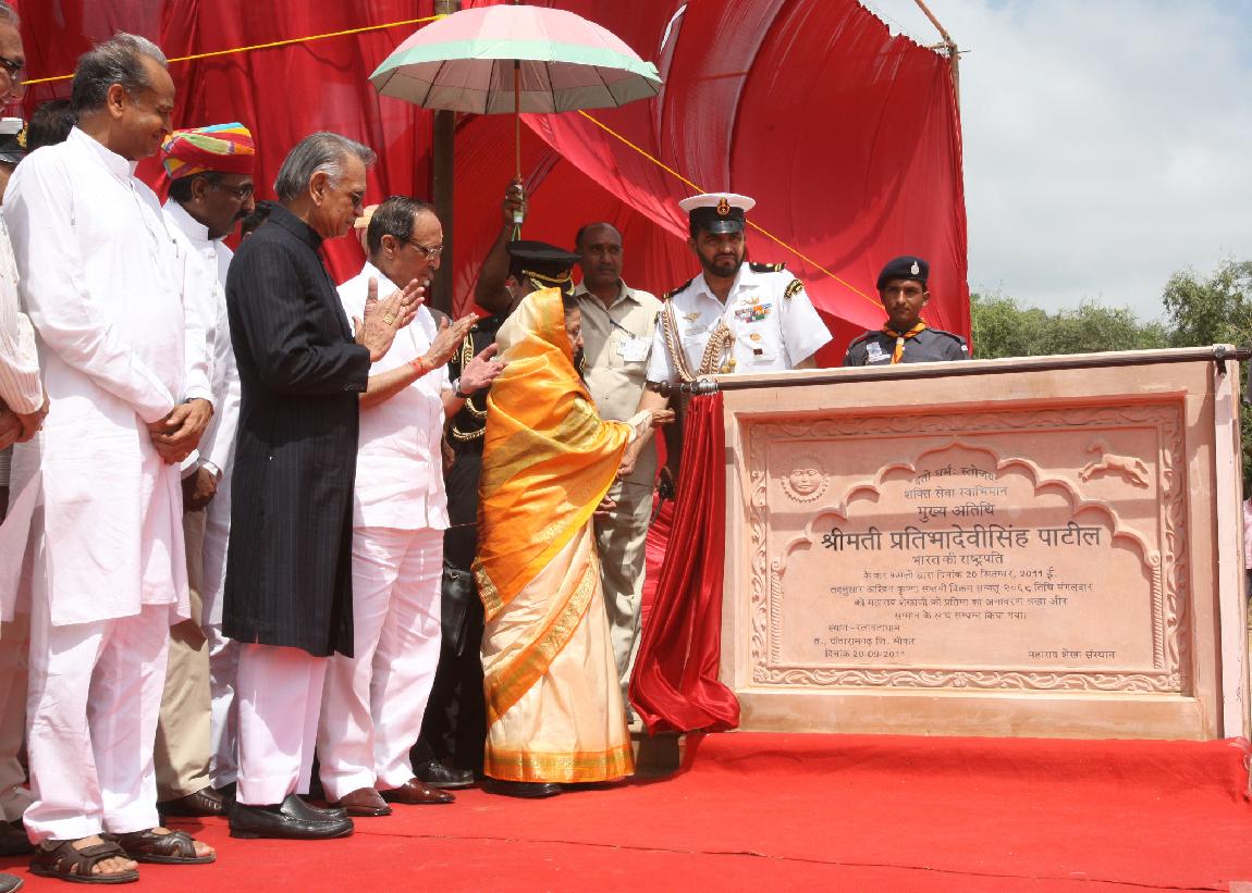 | Caption: | The President of India, Smt Pratibha Devisingh Patil interacting with the Officer Bearers of the Maharao Shekha Sansthan after She Unveiled the Statue of Maharao Shekhaji at Ralawata in Rajasthan on Sep 20, 2011 |