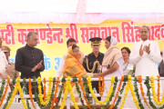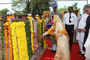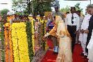 | Caption: | The President of India, Smt Pratibha Devisingh Patil unveiling the Statue of Deputy Commandant Amar Shaheed Satyawan Singh Yadav at Lakhu in Rajasthan on Sep 20, 2011 |
