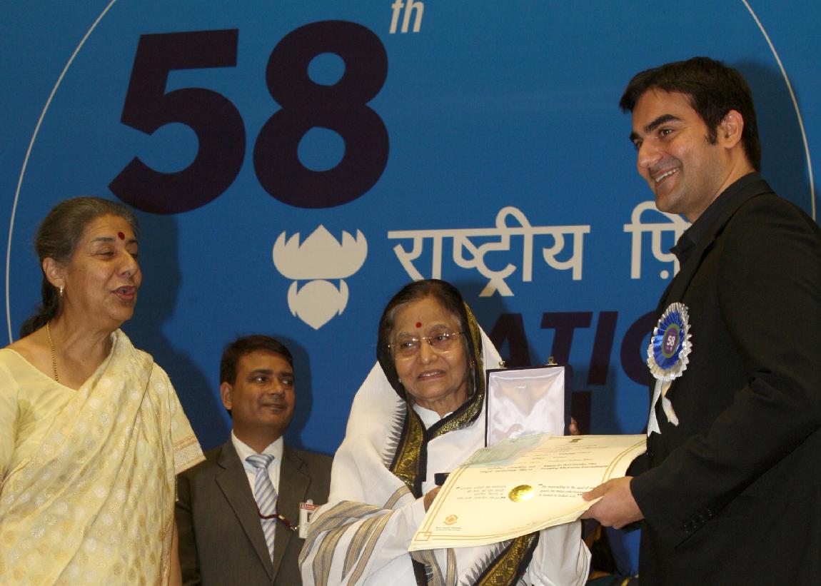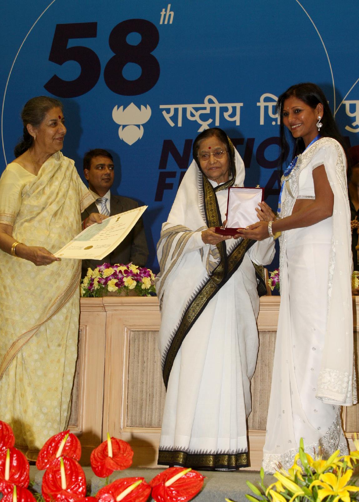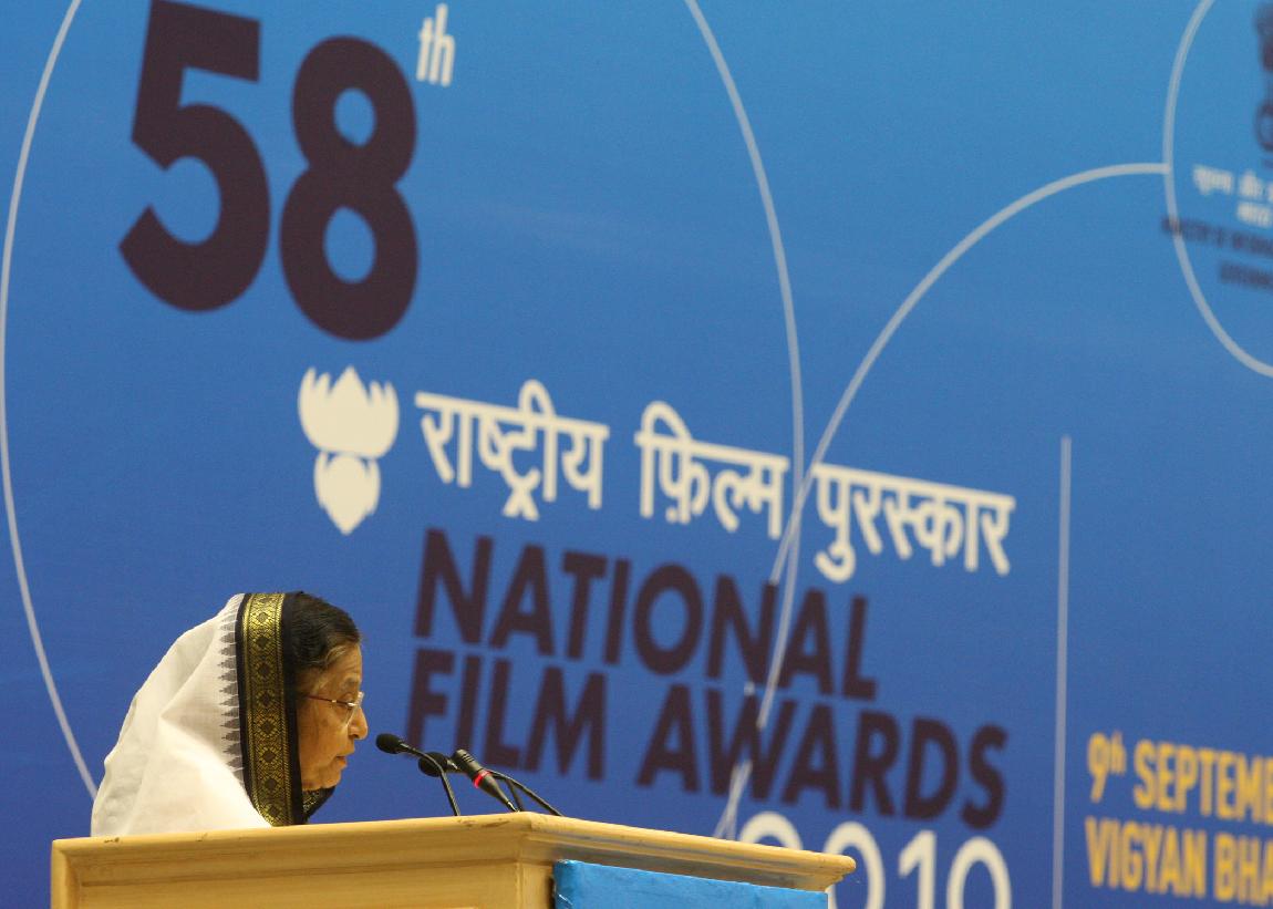 | Caption: | The President of India, Smt Pratibha Devisingh Patil presenting the Rajat Kamal, Swarna Kamal and Dada Saheb Phalke Award at the 58th National Film Awards in New Delhi on Sep 9, 2011 |