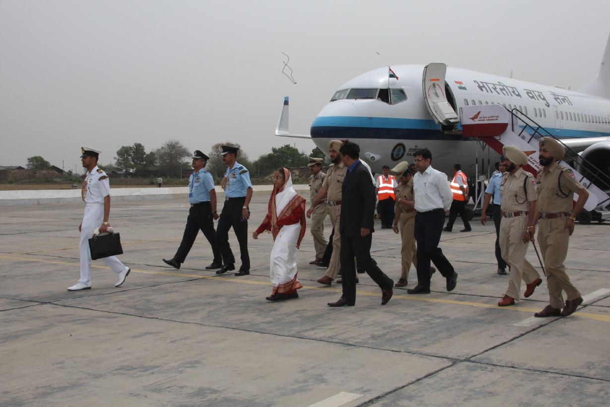| Caption: | The President of India, Smt Pratibha Devisingh Patil arriving at Halwara Airbase in Nabha, Punjab on April 12, 2010 |