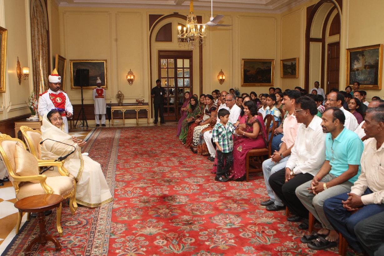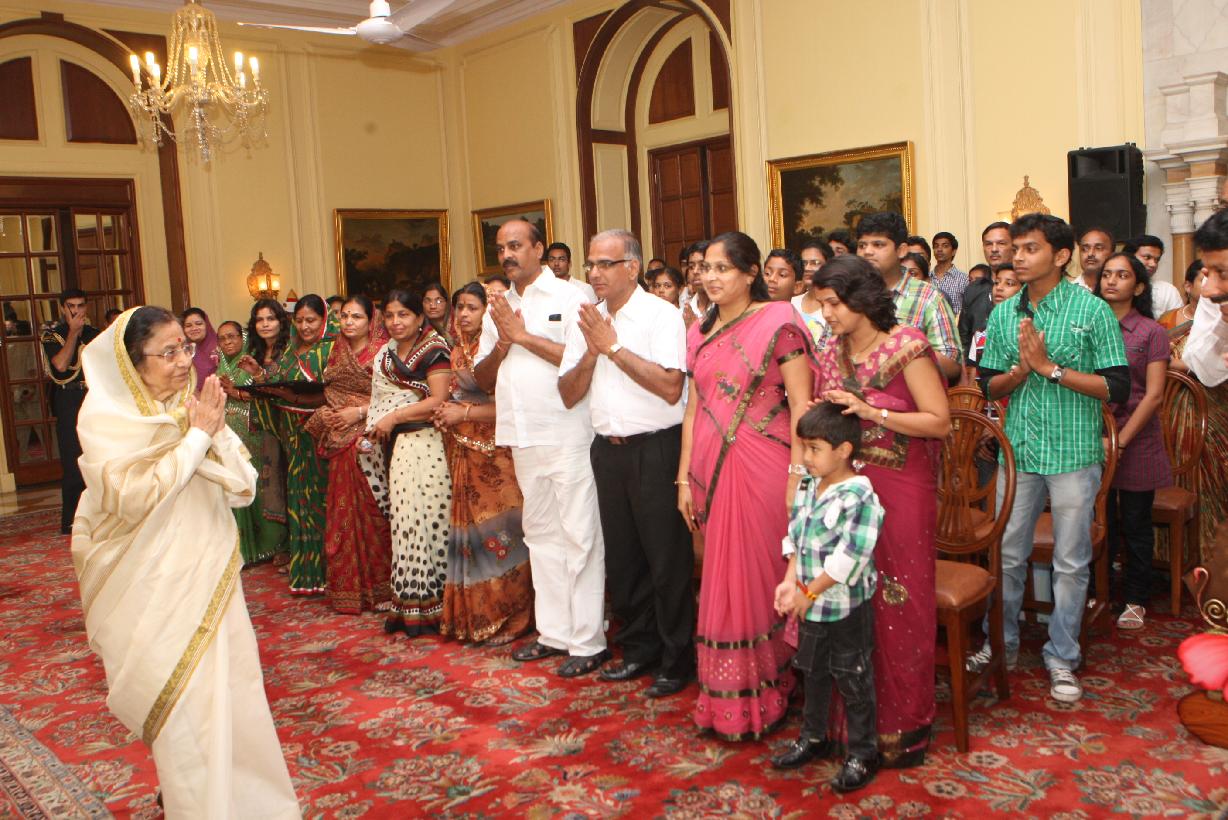 | Caption: | The President of India, Smt Pratibha Devisingh Patil interacting with Shri Gopal Panpaliya and others at Rashtrapati Bhavan in New Delhi on Sep 02, 2011 |