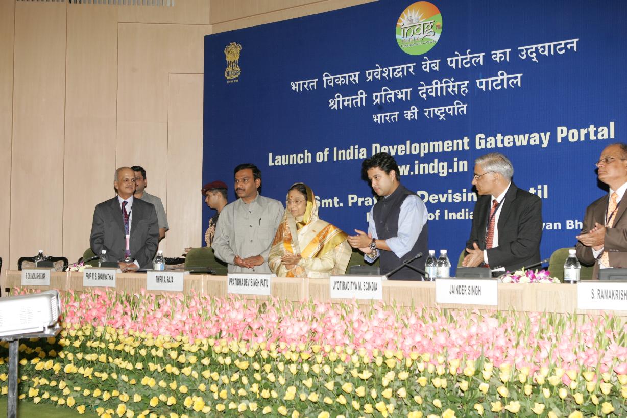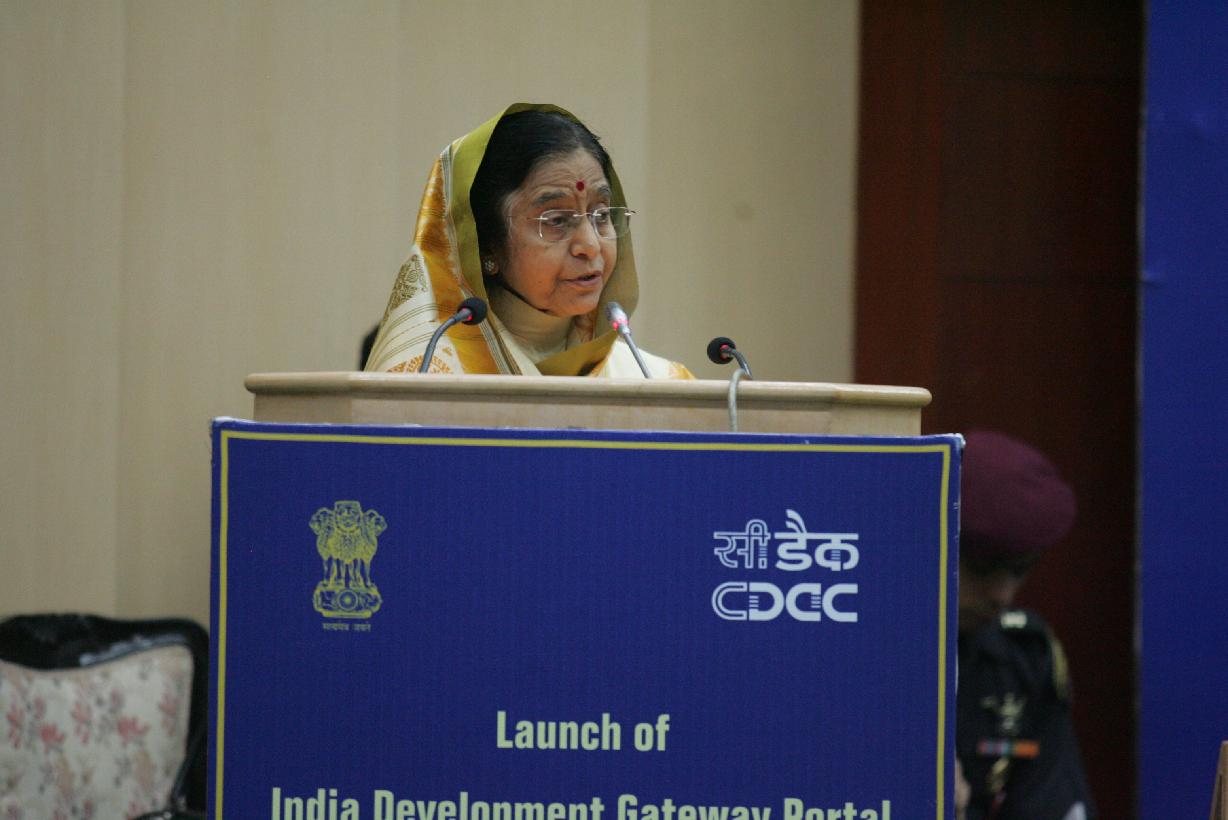 | Caption: | The President of India, Smt Pratibha Devisingh Patil during the Launch of the India Development Gateway Web Portal (www.indg.in) at Vigyan Bhavan in New Delhi on July 04, 2008 |