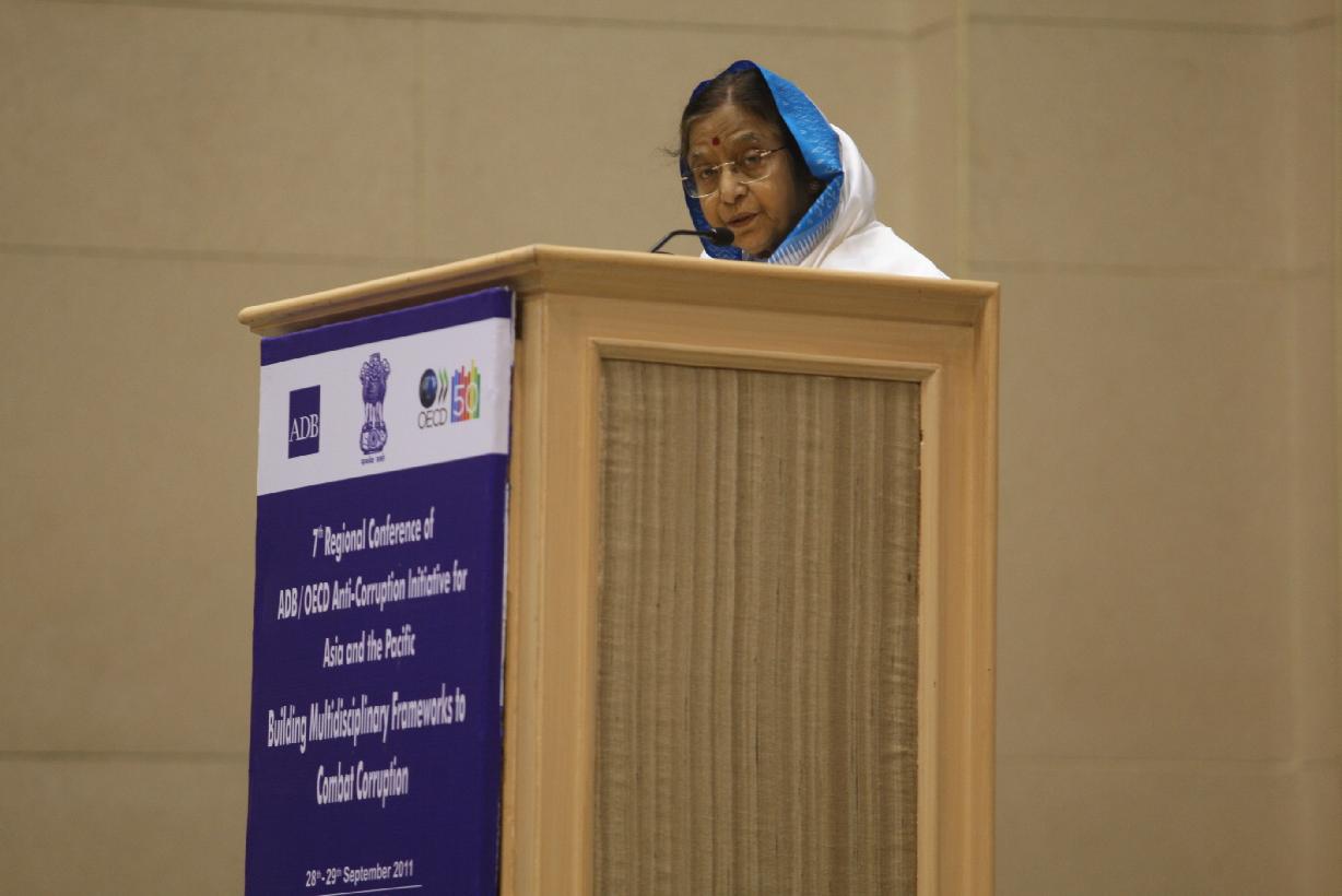 | Caption: | The President of India, Smt Pratibha Devisingh Patil inaugurating the 7th Regional Conference of the ADB-OECD Anti-Corruption Initiative for Asia and the Pacific Region on 'Building Multidisciplinary Frameworks to Combat Corruption at Vigyan Bhavan in New Delhi on Sep 28, 2011 |