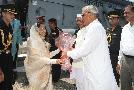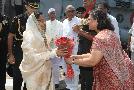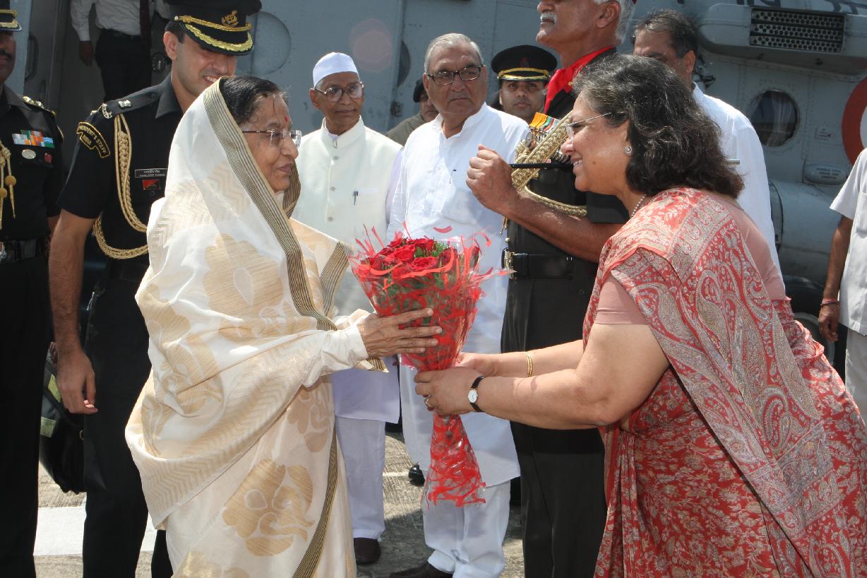 | Caption: | The President of India, Smt Pratibha Devisingh Patil being welcomed by the Governor of Haryana, Shri Jagannath Pahadia and the Chief Minister of Haryana, Shri Bhupinder Singh Hooda at NSG Helipad in Haryana on Sep 16, 2011 |