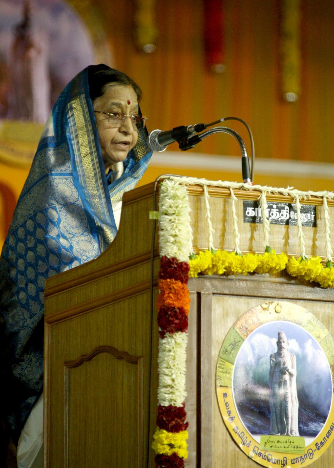 | Caption: | The President of India, Smt Pratibha Devisingh Patil inaugurating the First World Classical Tamil Conference at Coimbatore in Tamil Nadu on June 23, 2010 |
